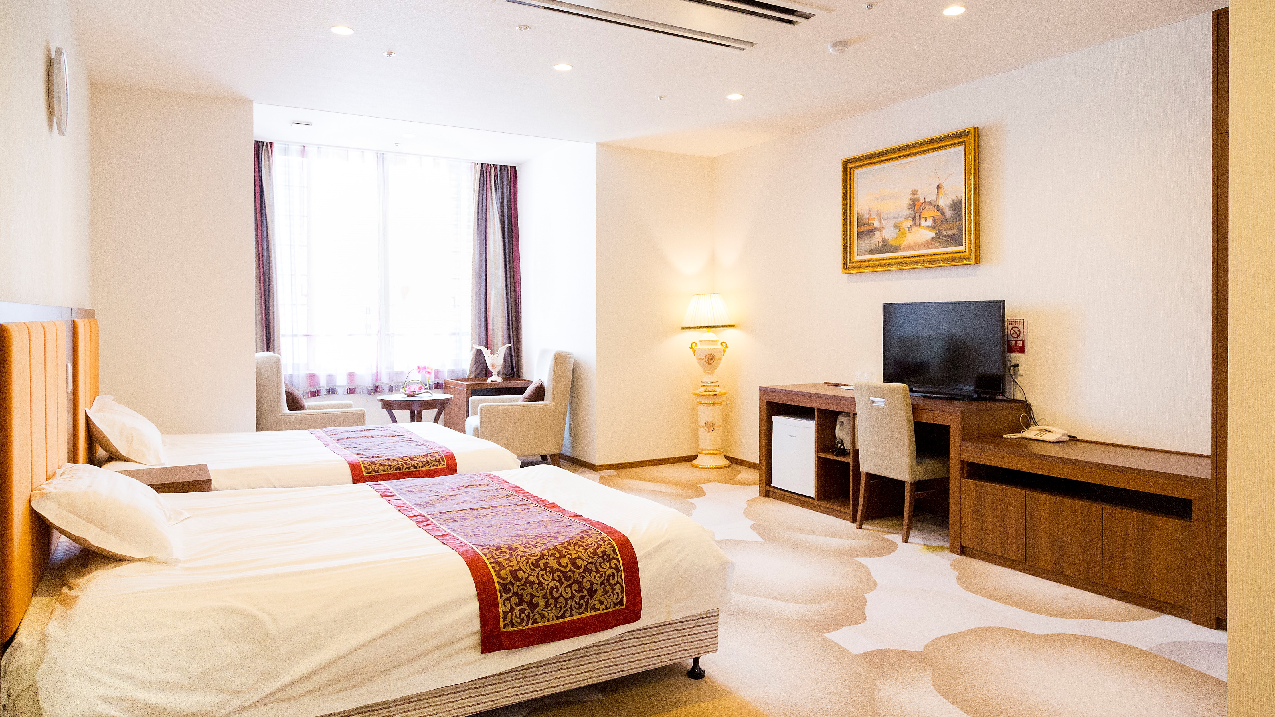 其中,以荷蘭美術館風格設計、洋溢著濃厚異國氣息的「Hotel Fruits Flower(ホテル フルーツ・フラワー)」提供了舒適且充滿異國情調的住宿體驗,讓旅人能遠離日常喧囂,徜徉於自然與花海之間。館內設有多種房型,包括洋式客房、和式客房以及套房,每一間皆以古典懷舊風格裝潢,彷彿帶領人回到那段優雅寧靜的時光。面向山景的客房,可以眺望大澤町綿延起伏的青翠山巒;而面向園區的客房,則可俯瞰宛如歐洲小鎮般的美麗景致。依照個人喜好選擇房型,無論是靜靜凝望自然,還是沉浸於異國庭園的浪漫氛圍中,都能度過一段自在悠閒的假期時光。