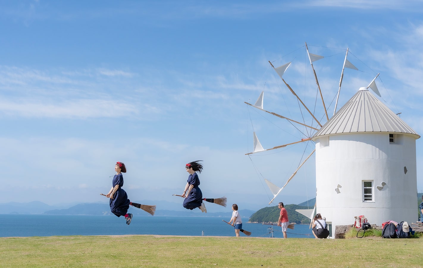 被約2,000棵橄欖樹環繞的道之驛小豆島橄欖公園(道の駅 小豆島オリーブ公園),座落於俯瞰瀨戶內海的小丘上,矗立著一座潔白的希臘風車。在橄欖公園中,可以深入了解橄欖的歷史與文化,這裡也是吉卜力電影《魔女宅急便》真人版的拍攝地,園區內提供免費的「魔女服裝」租借服務,穿上黑色洋裝與紅色髮帶,在風車前拍下夢幻照片,成為許多人來訪的必體驗之一。