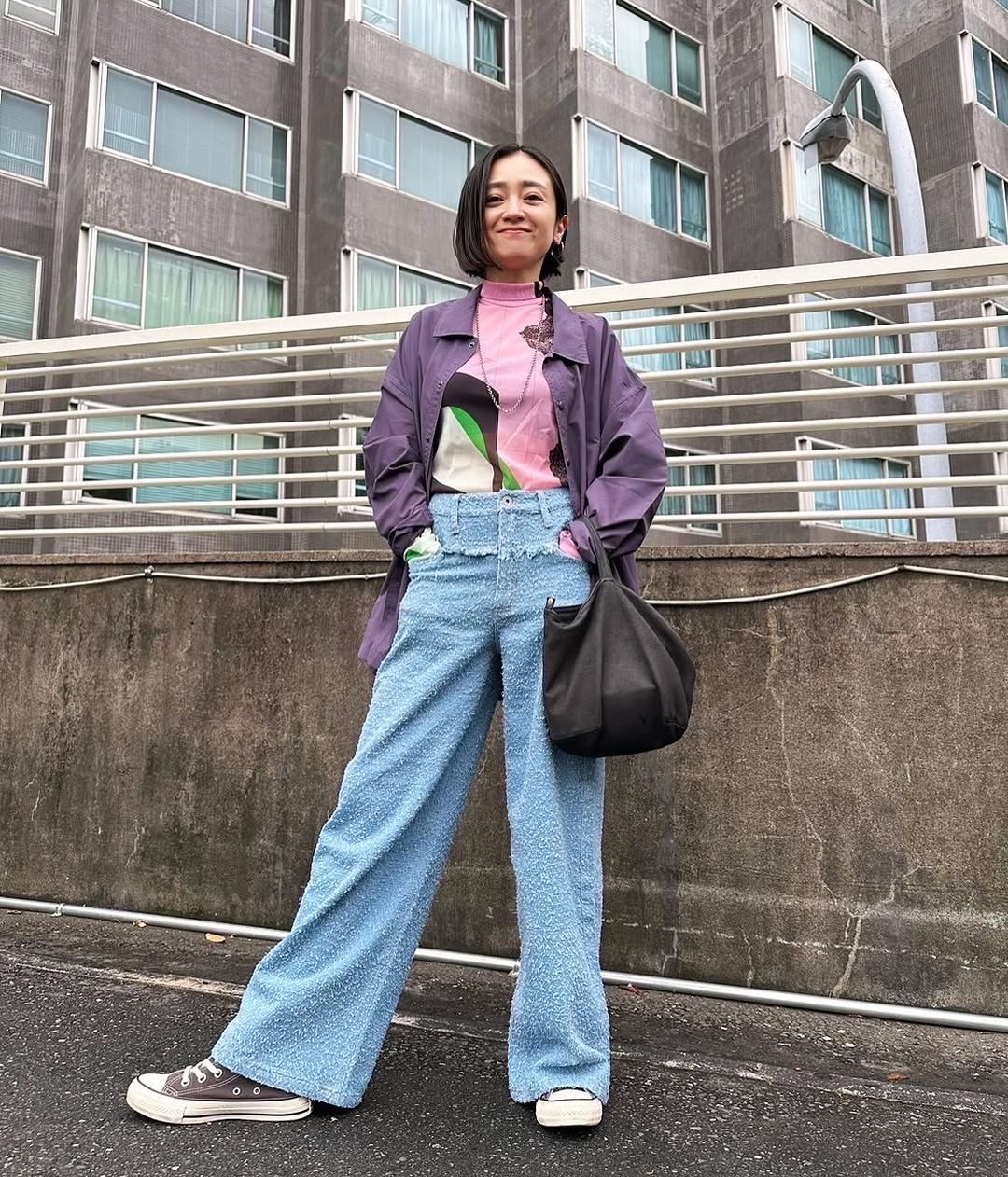 翻開安達祐實的 IG 可以發現,她很喜歡融入大膽鮮豔配色,或者有著搶眼的印花元素,像是紫色夾克、圖騰上衣都是出鏡率很高的款式,著重在上身或下身的重點單品,一展專屬時髦個性的好品味,喜歡安達祐實的穿搭不妨拿她當參考範本。