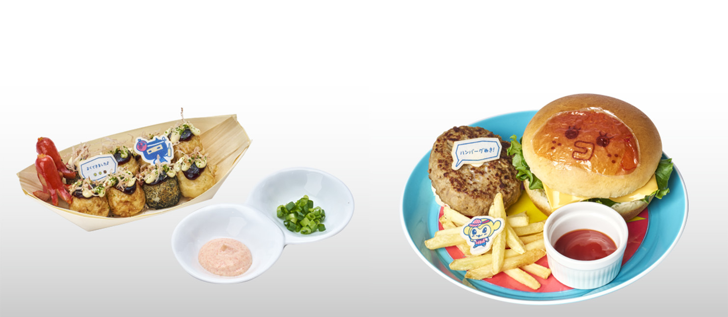 ■ 餐點名稱:ござるっちのたこやきやさんのたこ焼き/ききっちのハンバーガーやさんのハンバーグぬきチーズバーガー