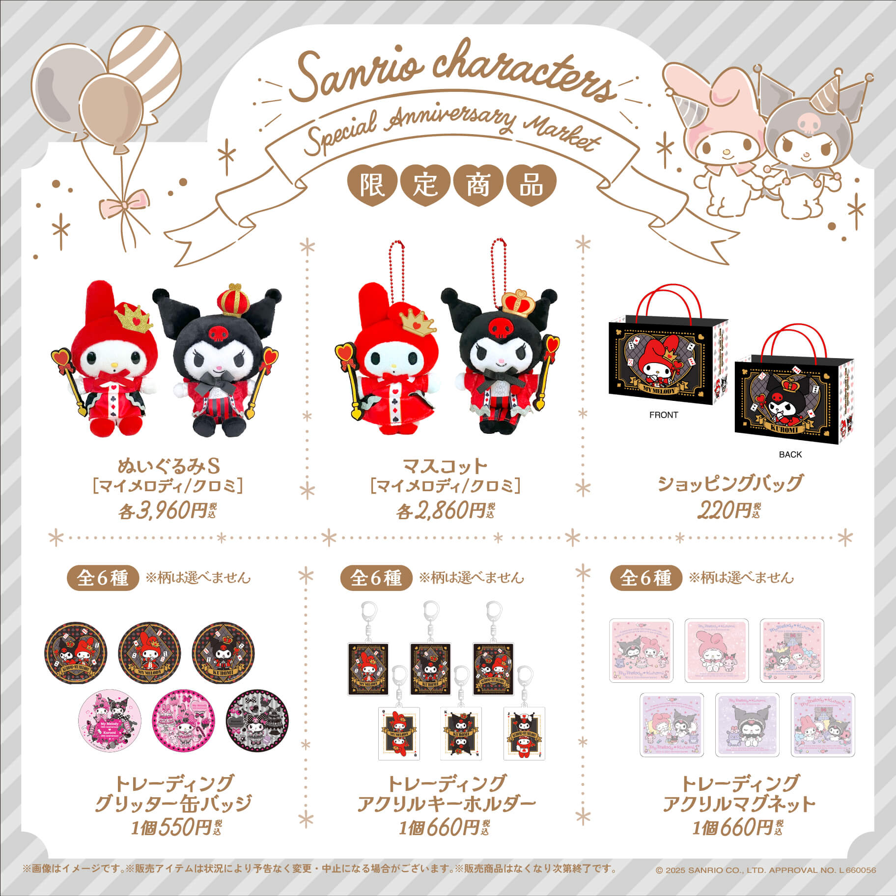2025年是三麗鷗旗下多位人氣角色的重要週年慶典──《草莓新聞(いちご新聞)》迎來創刊50週年,美樂蒂(マイメロディ)與雙子星(リトルツインスターズ)也將共同慶祝50週年,人魚漢頓(ハンギョドン)40週年,庫洛米(クロミ)20週年,而男子偶像團體HAPIDANBUI(はぴだんぶい)則迎來成軍5週年。為了慶祝這個宛如奇蹟般的紀念之年,三麗鷗特別推出超大型購物活動「Sanrio characters Special Anniversary Market」!