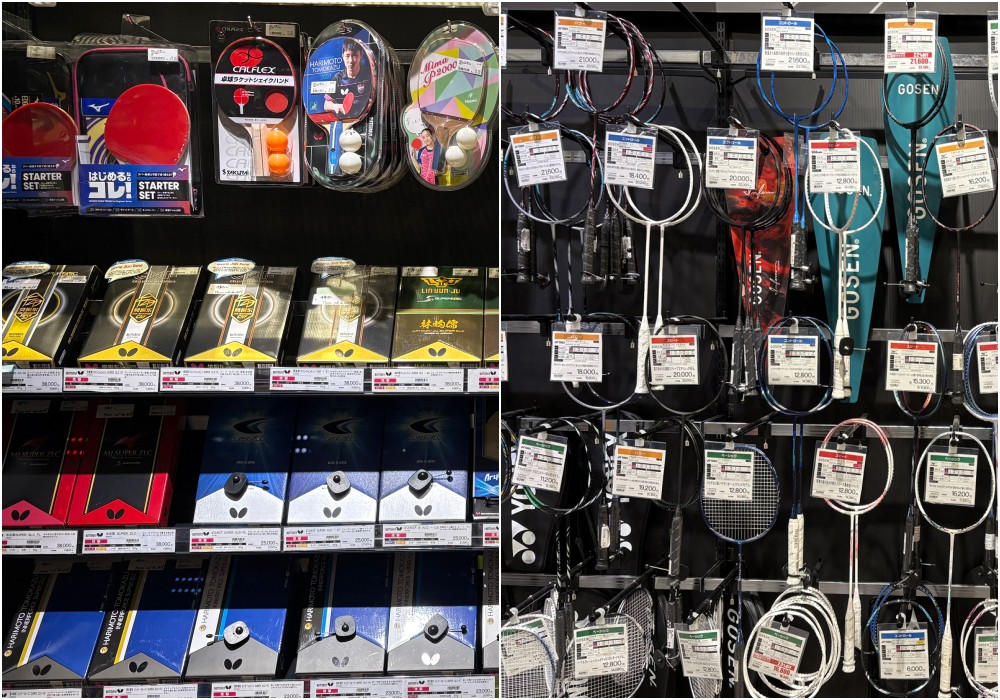 如果你喜歡桌球,那這裡一定會讓你逛得很開心!像是超人氣品牌「Butterfly」的桌球拍和膠皮種類超多,還有各式桌球鞋、小配件,從練習到比賽需要的東西幾乎都找得到,不管是剛開始接觸還是打得有點經驗的人都很適合。如果你是羽毛球愛好者,這裡也準備了很多好物。大家熟悉的「YONEX」從球拍、球線到鞋子、羽毛球全都有,想找入門款還是比較有質感的款式都沒問題。喜歡揮汗運動的你,來這裡補貨準沒錯!