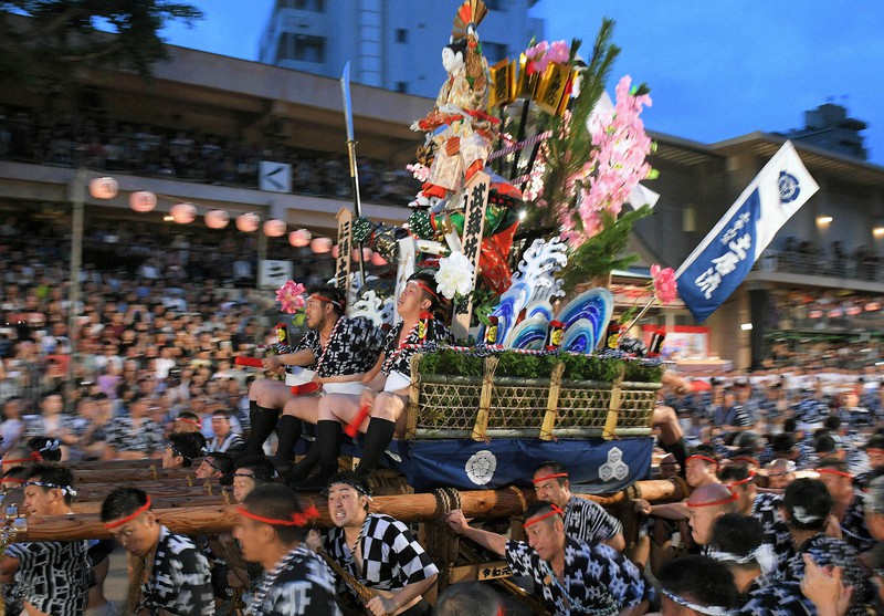 博多祗園山笠是由櫛田神社在每年七月上半月舉行,為期半個月的奉納神事,擁有著超過700年的悠長歷史。所謂「山笠」是指由六根轎棍所扛起的巨大人形,是該祭典的傳統器具,在祭典期間,福岡市內到處都可以看到這樣巨大的裝飾山笠。