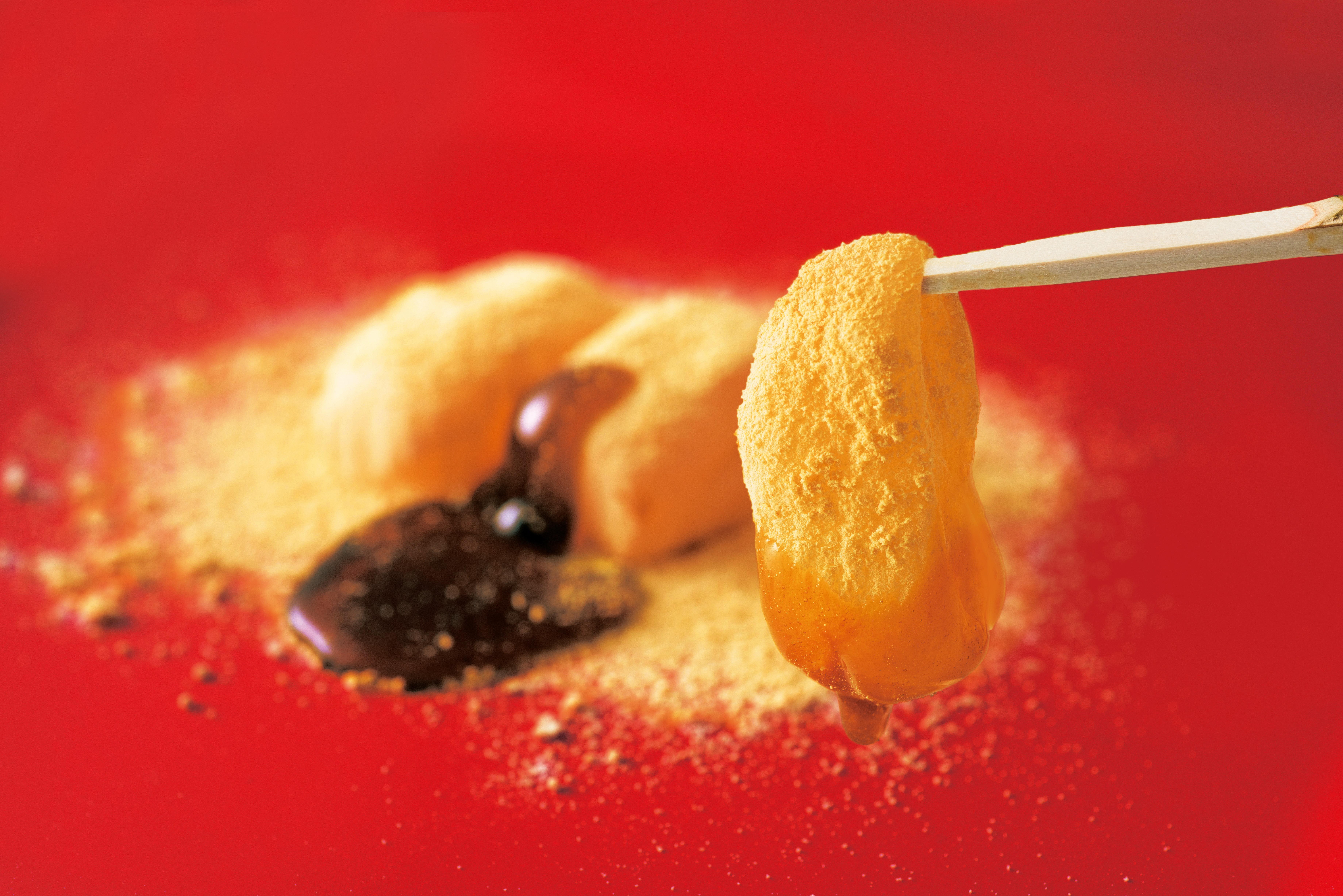 每年熱銷超過一千萬個、銷售歷史長達48年的「筑紫餅」,正是如水庵最具代表性的明星商品囉!這款麻糬點心選用來自九州筑紫平野的「比翼米(ヒヨク米)」製作,並以特製水源精心揉製而成。外層覆上使用僅占日本國產大豆產量0.5%的稀有「玉誉大豆(タマホマレ)」所製成的香濃黃豆粉,再搭配黑糖蜜一同享用,帶來香氣四溢、口感滑順的多層次美味。