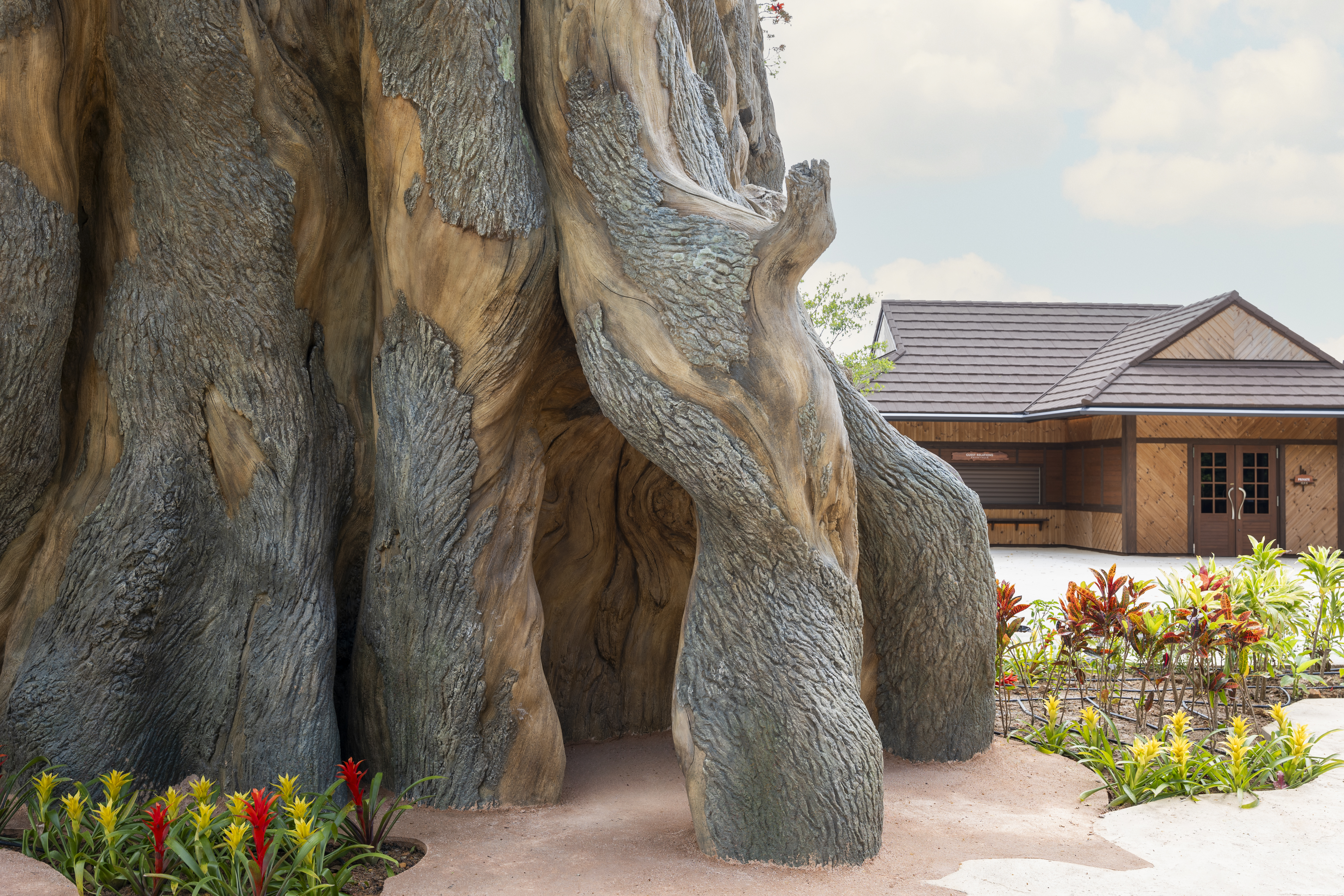 其中尤以「榕樹」最具象徵性,其為沖繩常見的聖樹,又被譽為「精靈宿居之木」。這種樹木會從枝幹伸出氣根向下扎入土壤,最終與地面融合,展現無與倫比的生命力。JUNGLIA TREE 所選用的榕樹目前仍年輕,尚未展現完整氣根,但將與園區一同歷經時光成長,持續守護每一位來訪者。