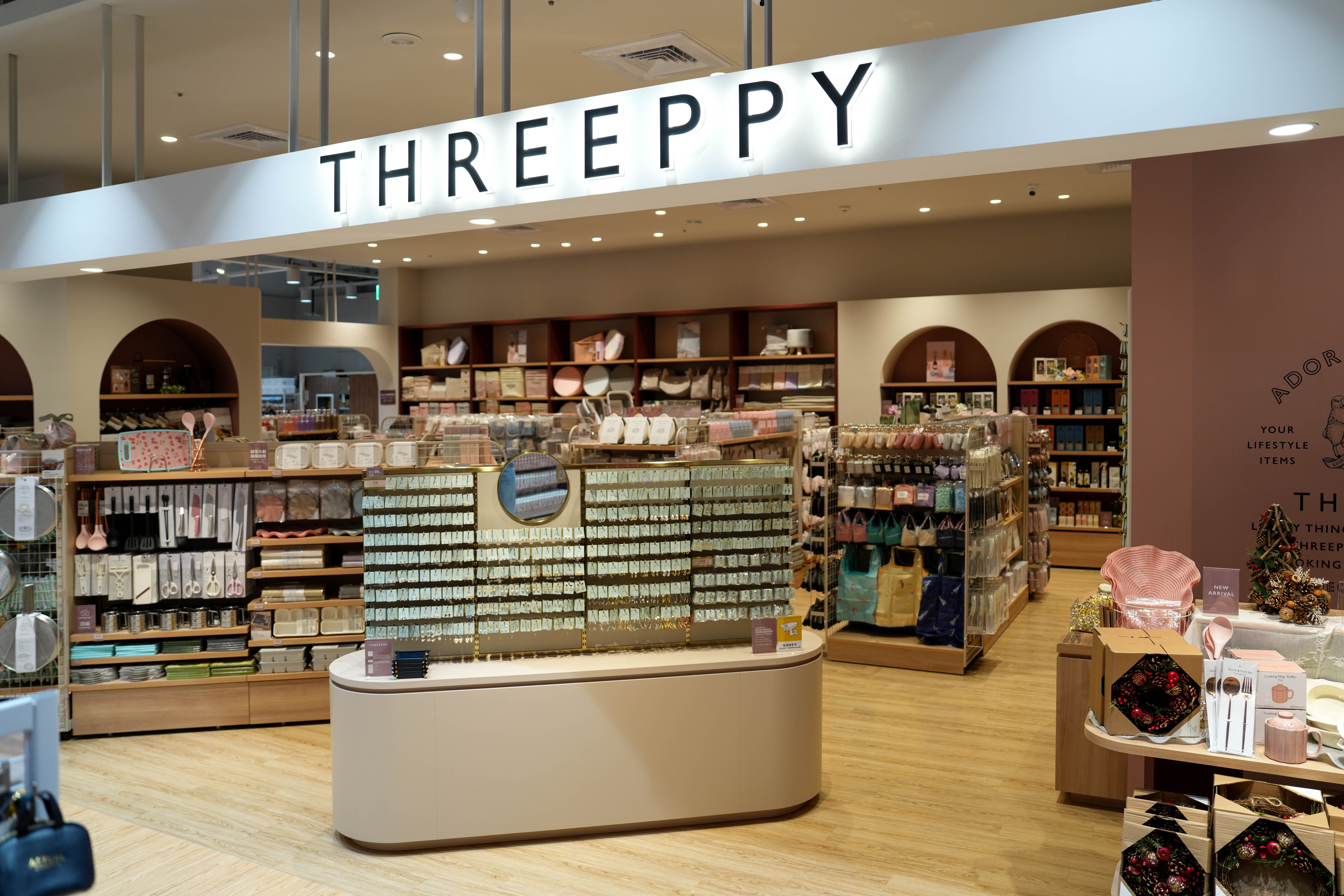 「THREEPPY」則以可愛、色彩繽紛設計為核心,提供一系列柔和色彩的小物與雜貨,商品售價以99元為主,深受年輕族群與親子客層喜愛,是追求快樂變換日常風格的最佳選擇。