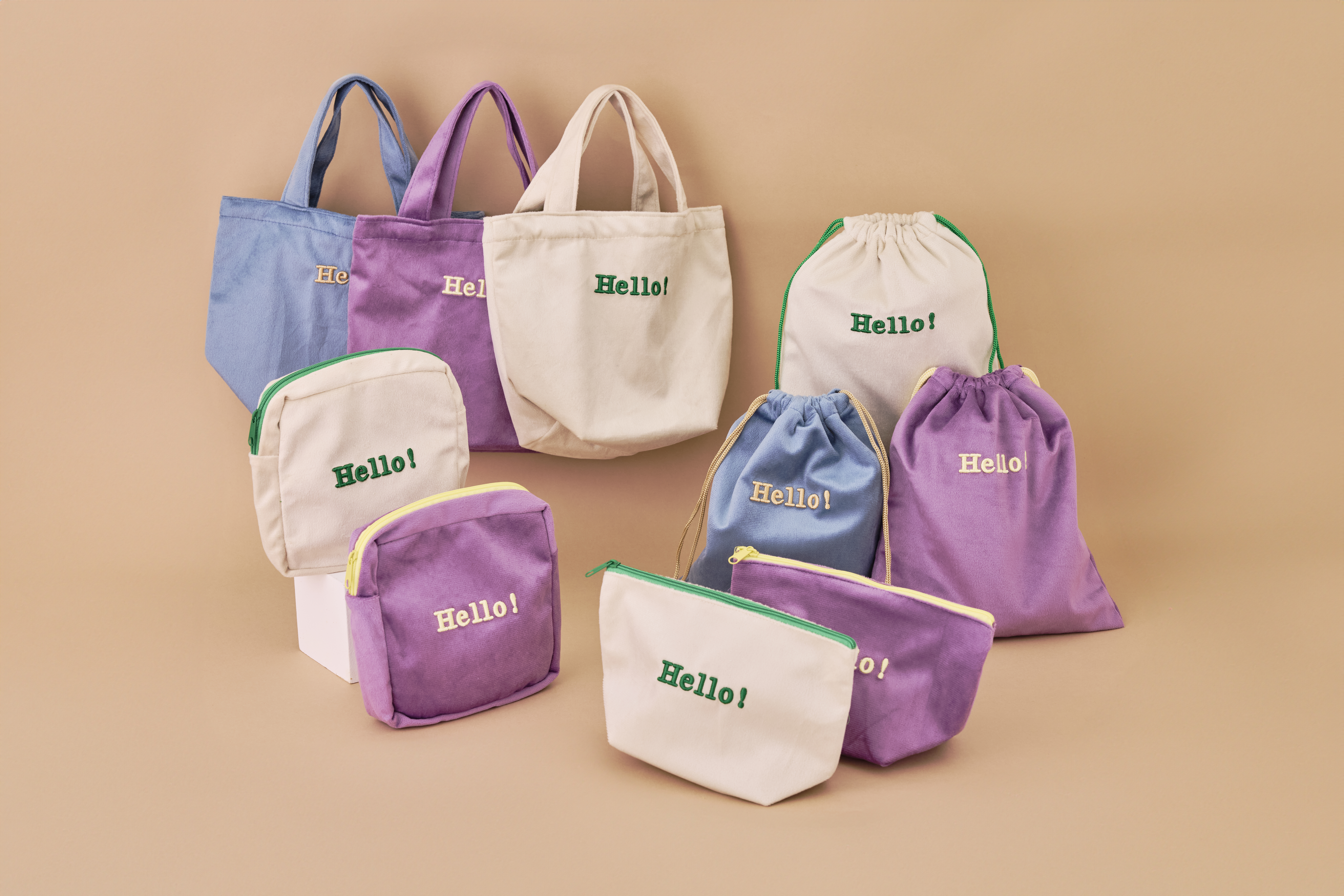 精緻Hello刺繡標誌,多款式可選、活力配色實用配件,輕鬆為穿搭加分。