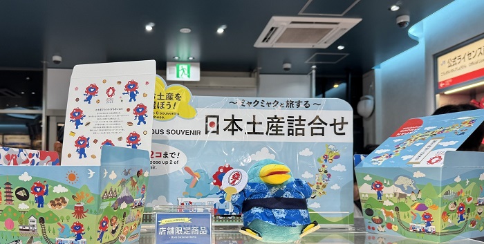 說到JR西日本,大家最熟悉的一定就是ICOCA和鴨嘴獸 ICo-Chan(伊口醬),這次他們跟萬博聯名的周邊商品只有在西口的官方周邊專賣店才能買到,而且所有伊口醬的品項都非常難買,建議大家想要的話要早點去排隊,會有專門排特定品項的隊伍。