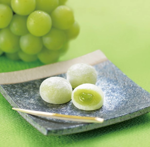 岡山因為有溫暖氣候與豐富日照,因此被譽為「水果王國」。竹久夢二本舖敷島堂就將岡山經典和菓子「吉備糰子」結合被稱為「葡萄女王」的麝香葡萄,推出「元祖麝香葡萄吉備糰子(マスカットきびだんご)」。柔糯的糰子外皮與內餡果蜜完美融合,一口咬下,酸甜果香在口中綻放,風味清爽不膩,令人忍不住連吃好幾顆。