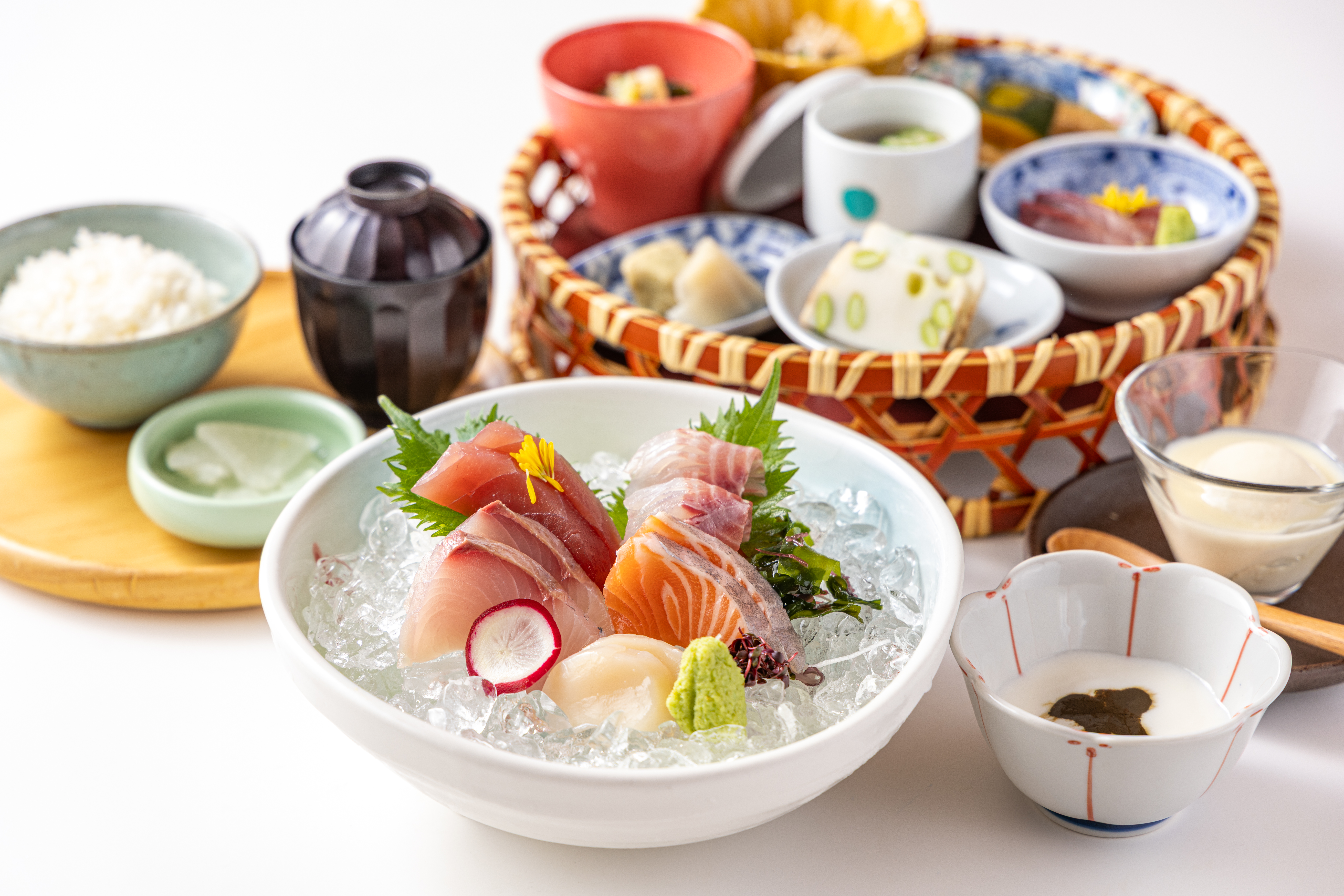 「菜な」提供套餐與單品的選擇,圖為懷石籠綜合生魚片五品