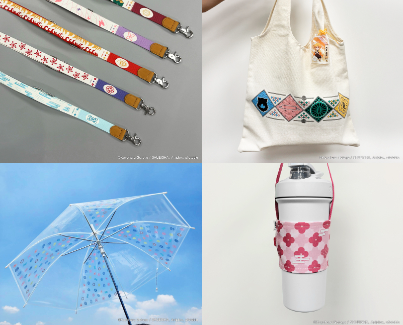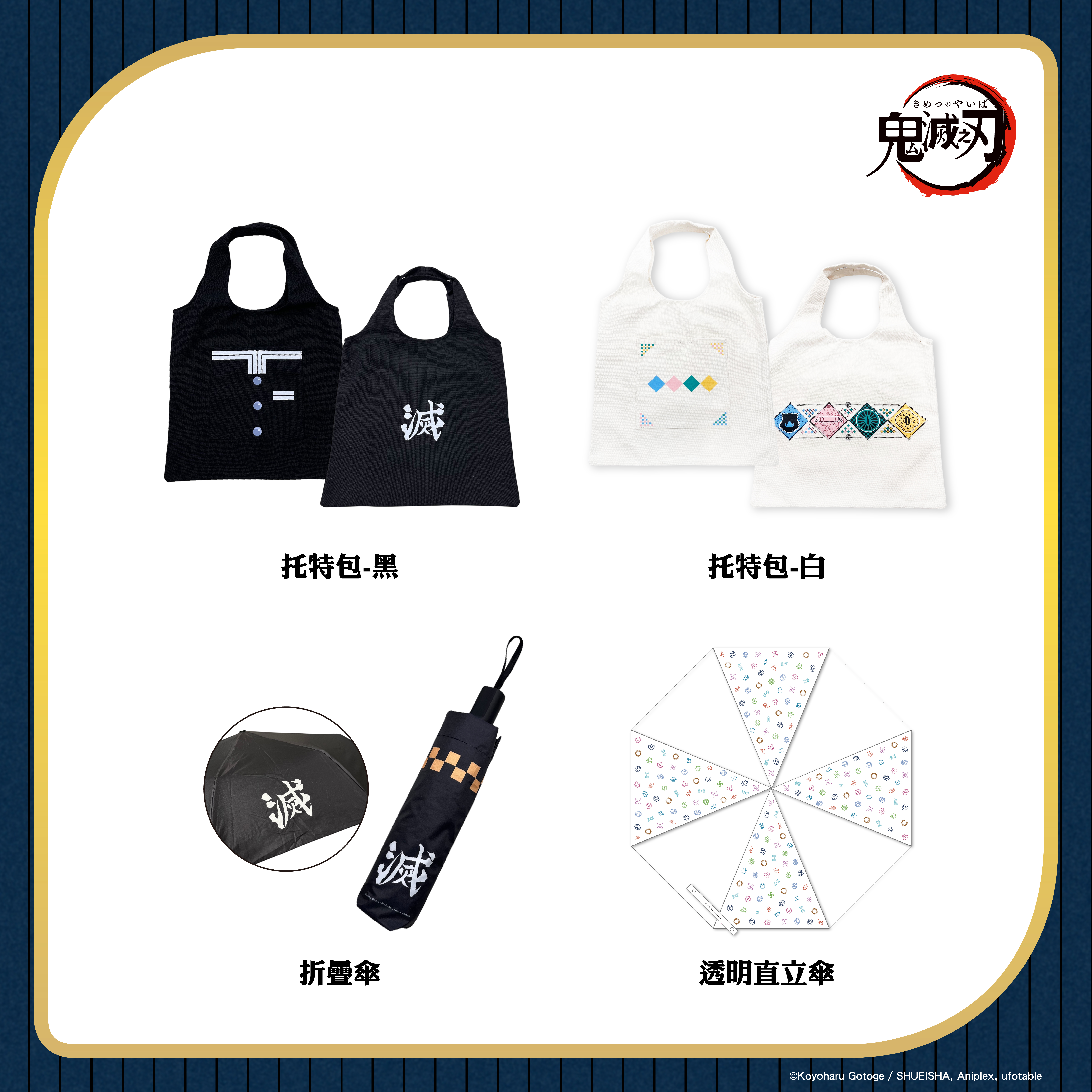 大容量托特包兼具造型與實用性;雨傘提供兩種款式選擇,輕便摺疊的「九柱防曬傘」適合日常攜帶,滿版圖樣的「九柱透明直傘」則展現可愛俏皮風格。