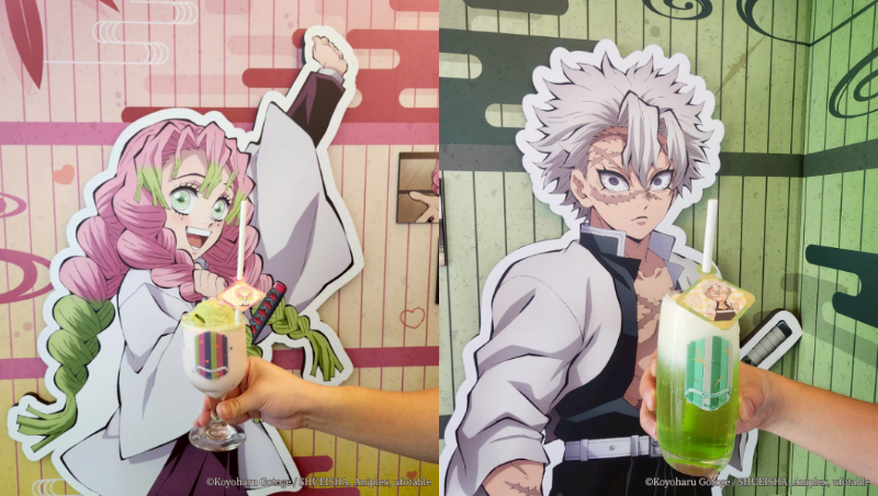本次店內裝潢以滿滿和風元素還原《鬼滅之刃》的世界,七位柱(水柱、蟲柱、霞柱、戀柱、岩柱、蛇柱、風柱)將現身牆面,粉絲們可與喜歡的柱一起合影打卡,彷彿參與了訓練關卡!還有炭治郎、善逸、伊之助的等身立牌,快來與他們合照留念吧。