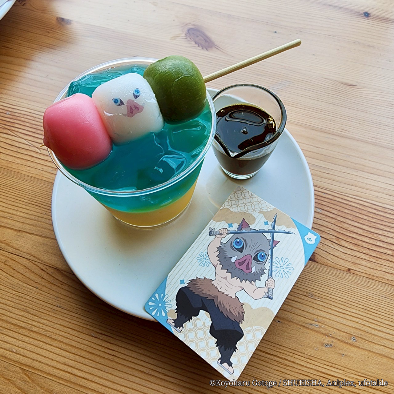 「獸之呼吸果凍布丁杯」,藍柑橘果凍與雞蛋布丁,搭配表面有驚喜小圖案的三色糰子(贈指定小卡1張)