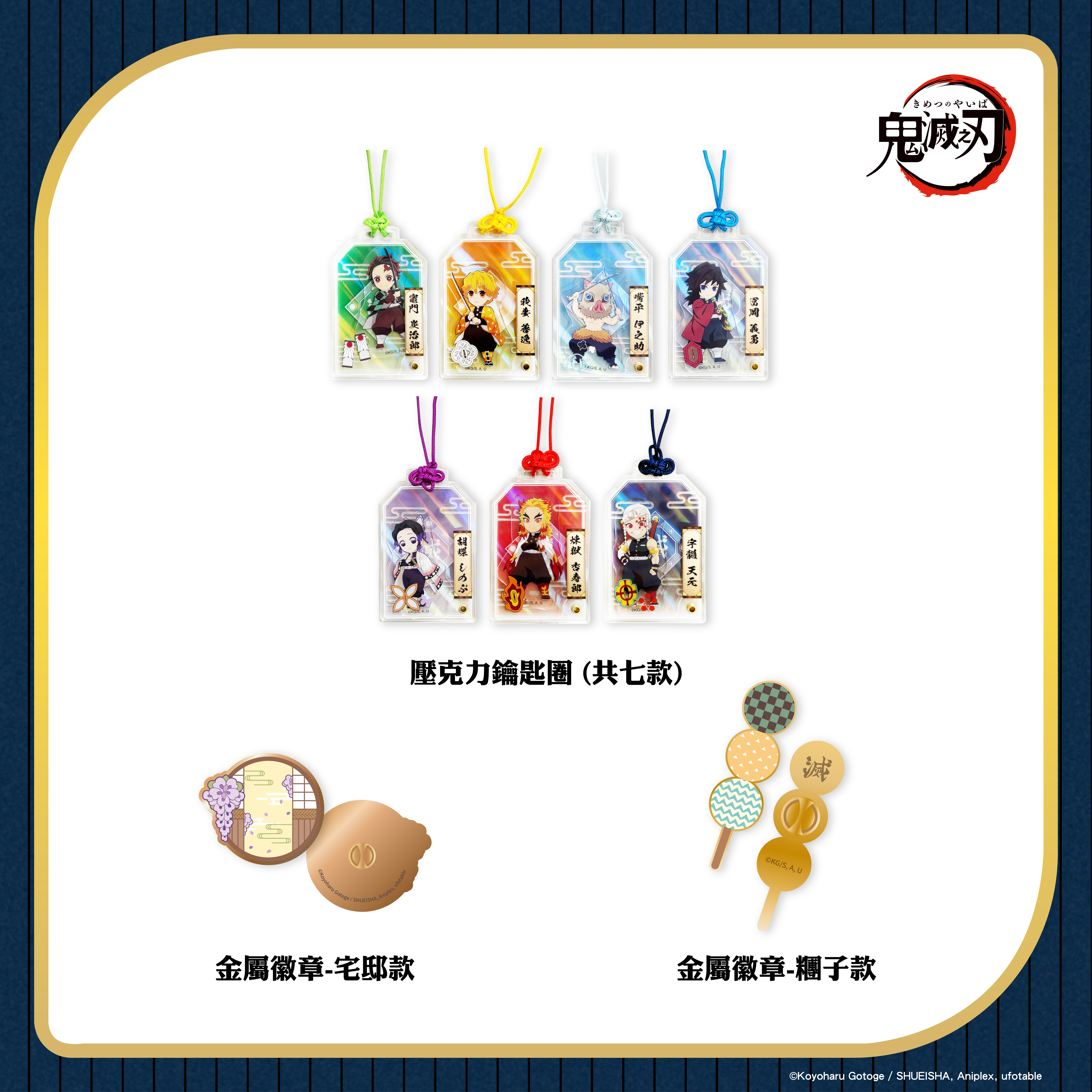 御守造型的搖搖壓克力鑰匙圈採多層設計,配上炫光背景與繩結吊飾,掛在包包上可愛又吸睛。另有金屬徽章能為包包點綴裝飾,製造穿搭小巧思,是粉絲們不可錯過的收集重點。