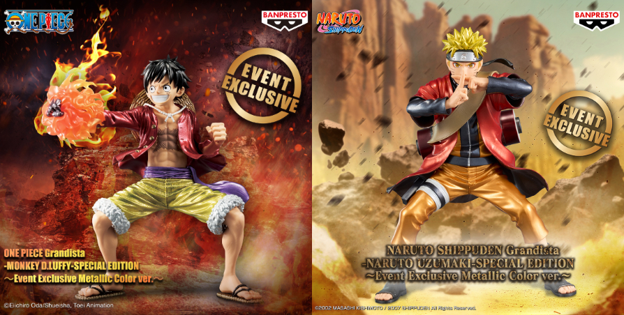 模型控們錢包準備好了嗎!主打魄力尺寸與優秀細節表現的Grandista系列推兩款海外限定模型,細緻地刻劃了使出橡膠火拳槍的魯夫的「航海王 Grandista-蒙其·D·魯夫-特別版~活動限定金屬色版本~」,還有仙人模式的鳴人身穿與培因對決時的服裝施展影分身之術的「火影忍者疾風傳 Grandista-漩渦鳴人-特別版~活動限定金屬色版本~」招牌忍者裝搭配紅色披風與巨大卷軸,帥氣爆棚!