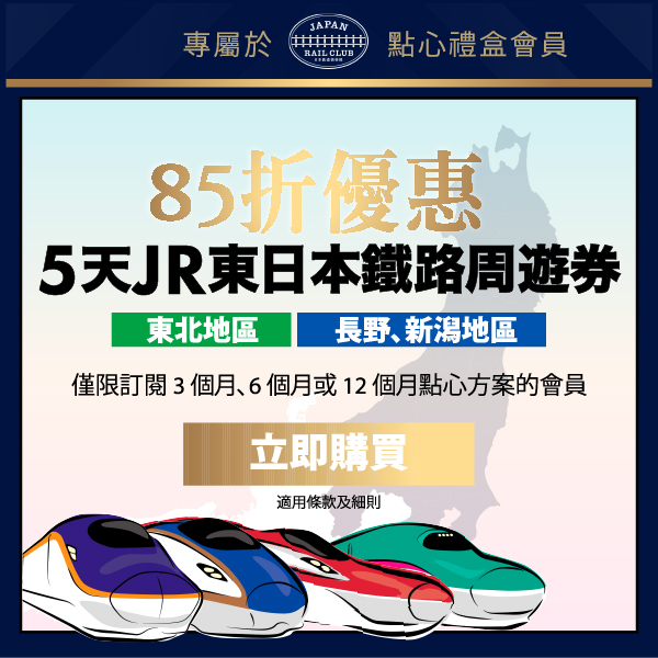 既然成為了 JR 東日本零食盒的專屬會員,那麼JR 東日本的好康也通通降臨!那就是去日本最最最需要使用到的JR 東日本鐵路周遊券折扣啦!凡訂閱 JAPAN RAIL CLUB 伴手禮零食盒(3、6 或 12 個月方案)的會員,即可享有 JR 東日本鐵路周遊券(東北地區或長野/新潟地區 5 日券)獨家 85 折優惠喔!打算去旅行的你,也別忘了這個專屬優惠!