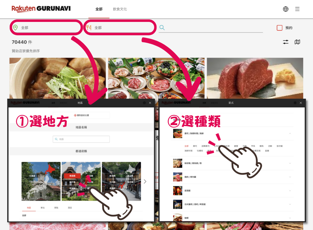 只要選擇[地區]與[料理分類],就能更順利、更方便地找到適合的店家喔!