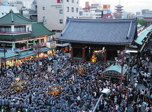 三社祭是東京都台東區淺草寺的傳統例大祭,其起源可追溯至1000多年前,淺草寺祭祀著協助建造神社的檜前浜成、竹成兄弟以及他們的好友土師真中知,因而得名三社,而在此處舉辦的祭祀便被稱為三社祭。