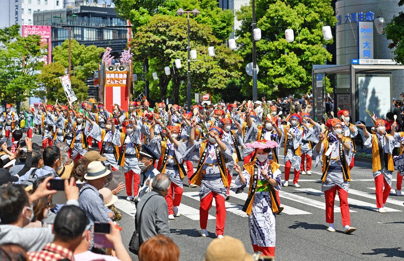 博多咚打鼓港口祭(博多どんたく港まつり)是福岡縣福岡市所舉辦的大型祭典,每年都吸引超過200萬人來參與,是日本黃金周期間規模最大的祭典。作為祭典特色的「博多咚打鼓」源自於博多松囃子,自室町時代便流傳進博多地區,隨後逐漸演變為當地傳統的藝能表演。
