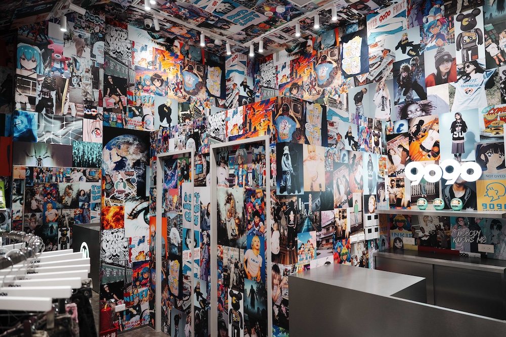 9090品牌總監表示,3月南港店的反響比預想中還要好,所以我們一直想挑戰開路面店。中山和東區一直以來都是年輕人聚集、非常有活力的區域。他特別補充,「東區給人一種古老街景與洗練氛圍並存的印象,因此採用了較為硬朗、簡潔的裝潢。而中山讓我聯想到日本澀谷的氣氛,所以想要打造更具能量、更繽紛的店面。設計上,拼貼過去 9090 的設計、拍攝的造型照,融入 AI 生成的虛構動畫,營造出「歷史 × 最尖端」的混沌空間,能讓人感受到 9090 的歷史與理念,也十分符合中山旗艦店的定位。