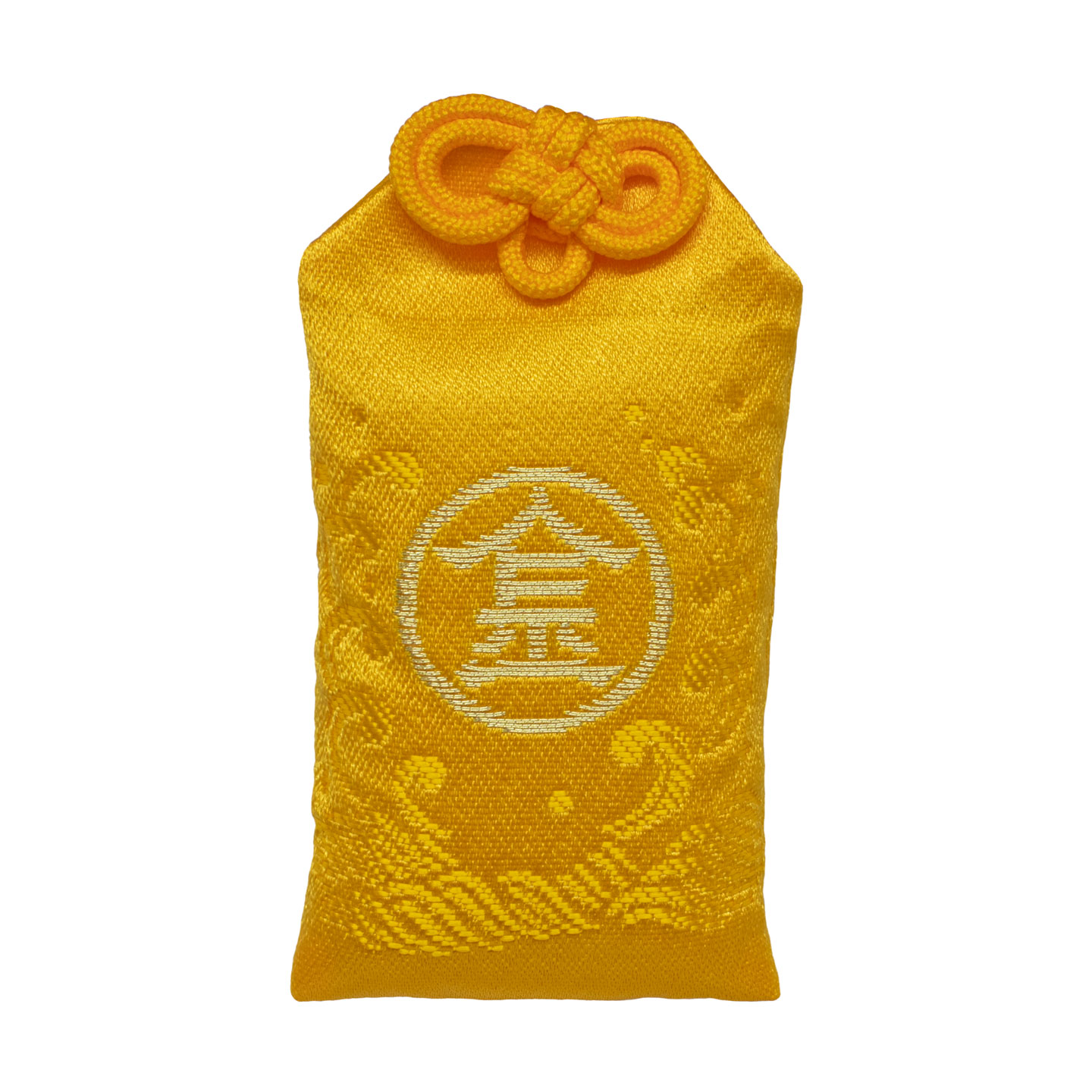 以薑黃染製而成的金黃布面所製成,既是充滿能量的金黃色,也是象徵著豐收的顏色,此呈現金黃色澤的幸福御守可說是金刀比羅宮最具代表的御守之一。有祈求自身無病無災,招來幸福之寓意存在,同時也能祈求家人的健康與平穩的生活等祈願。