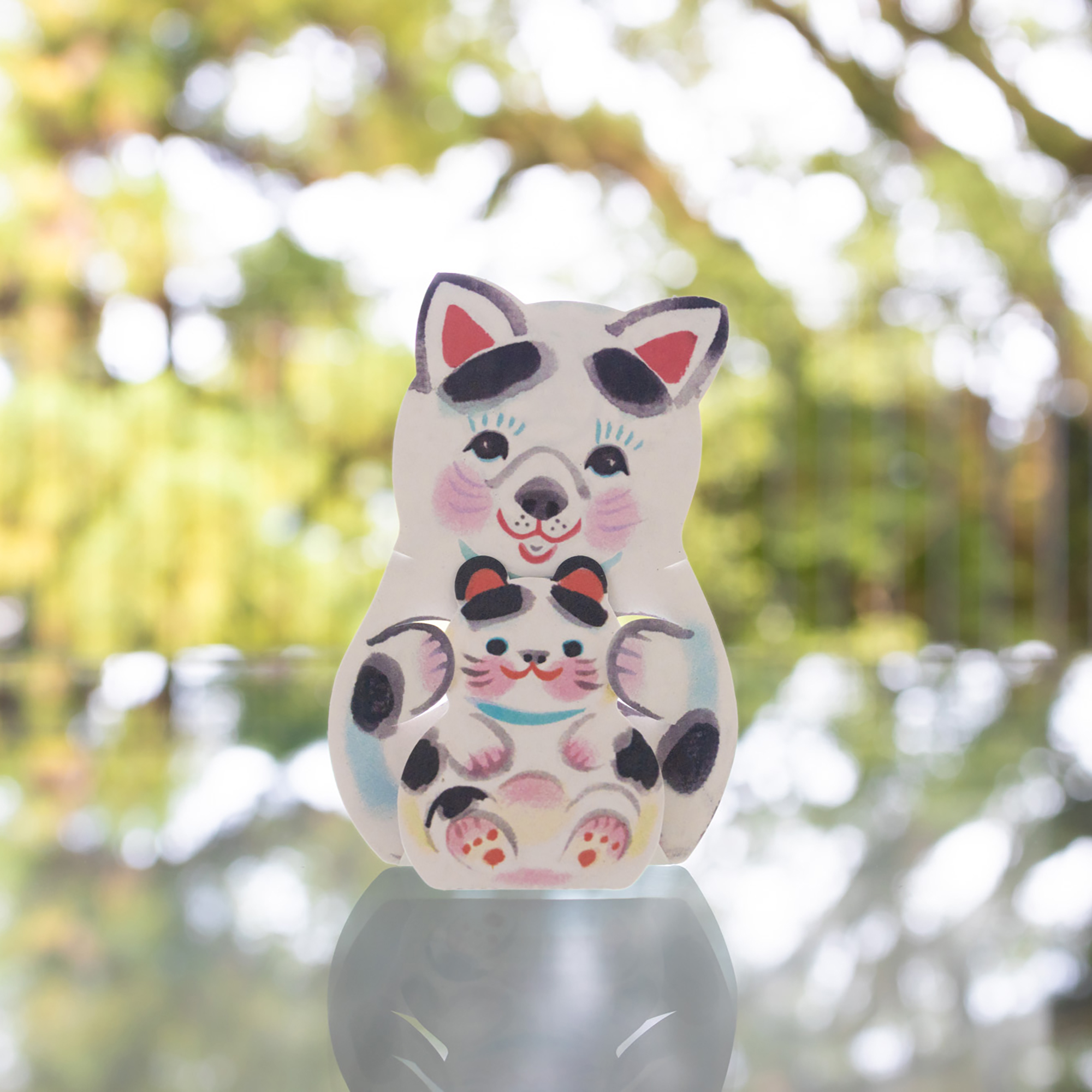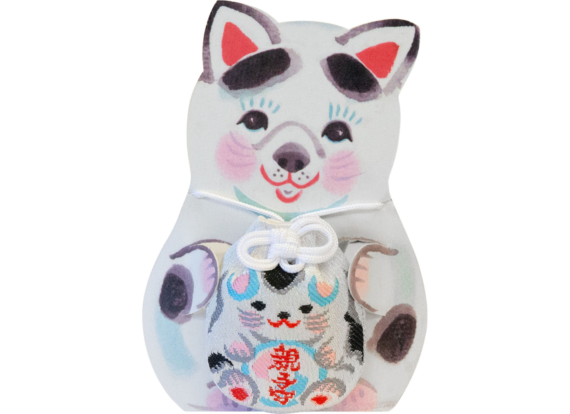 用來裝載御守的紙卡,特別請來了插畫家「犬ん子」,描繪出一幅母狗抱著小狗狗的慈愛模樣,犬ん子老師特別的筆觸與用色,也讓這幅圖畫美得讓人想好好收藏。