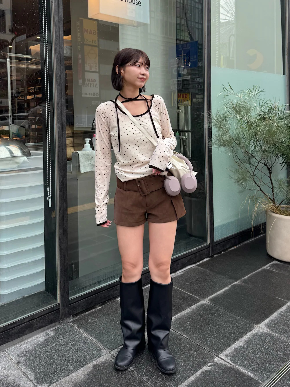選擇米加上咖啡色,為秋季穿搭點亮一股簡約乾淨的造型質感,尤其將米跟咖兩個顏色結合,能使整體注入知性大方的穿衣魅力,運用透膚或者針織面料加乘,讓想凸顯的氛圍更極致,隨便搭配手拿包、肩背包就很好看加分。