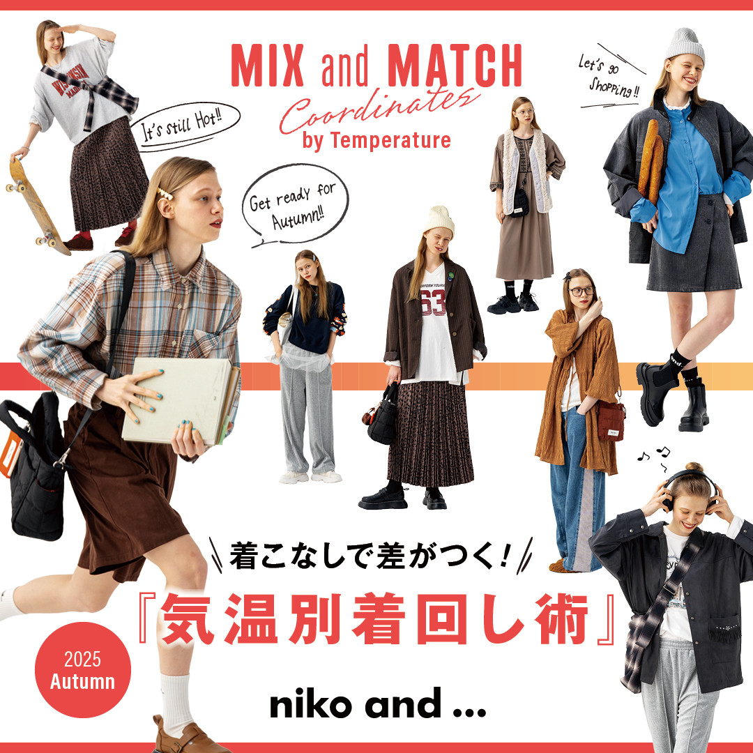 在服飾風格上,niko and ... 以寬鬆襯衫、寬褲、長版洋裝等單品展現出慵懶而自在的氛圍。透過材質與色彩呼應四季變化,春夏清新、秋冬溫暖,營造出隨性卻不失質感的日系休閒風格。設計基調以簡約、百搭、不易厭倦為核心,既能單穿,也能透過層次搭配展現不同表情。正因如此,niko and ... 的服飾不僅是日常生活的基礎,更成為年輕世代衣櫥裡的長青單品。