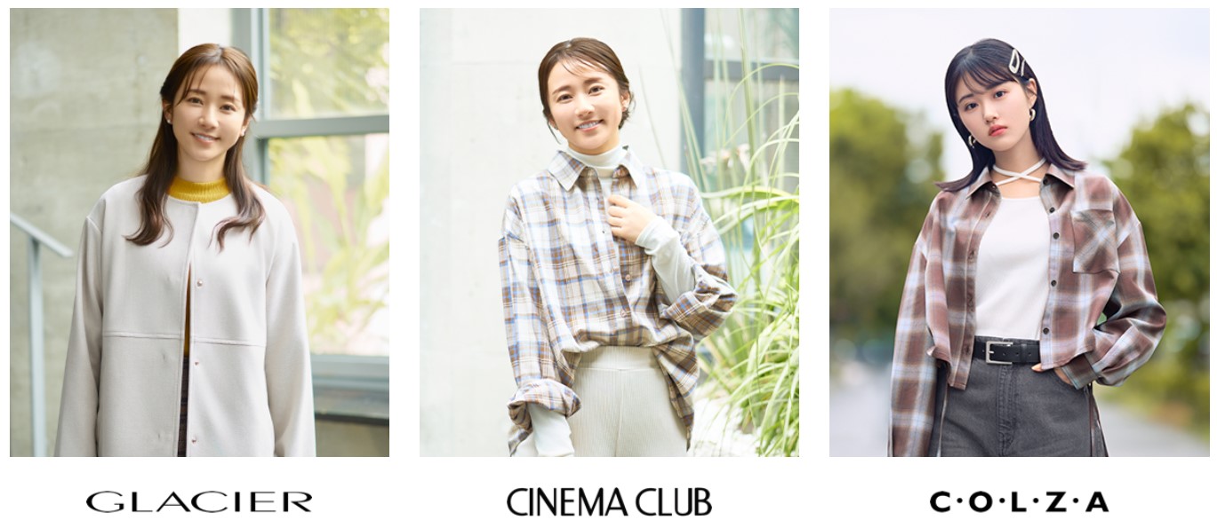 旗下細分為三個品牌線:以「成熟女性的時尚日常服」為概念的 GLACIER、能應對各種場合、無年齡限制的 CINEMA CLUB,以及主打結合流行與玩心、深受學生與上班族喜愛的 COLZA。三者風格各異,滿足不同年齡層的時尚需求。
