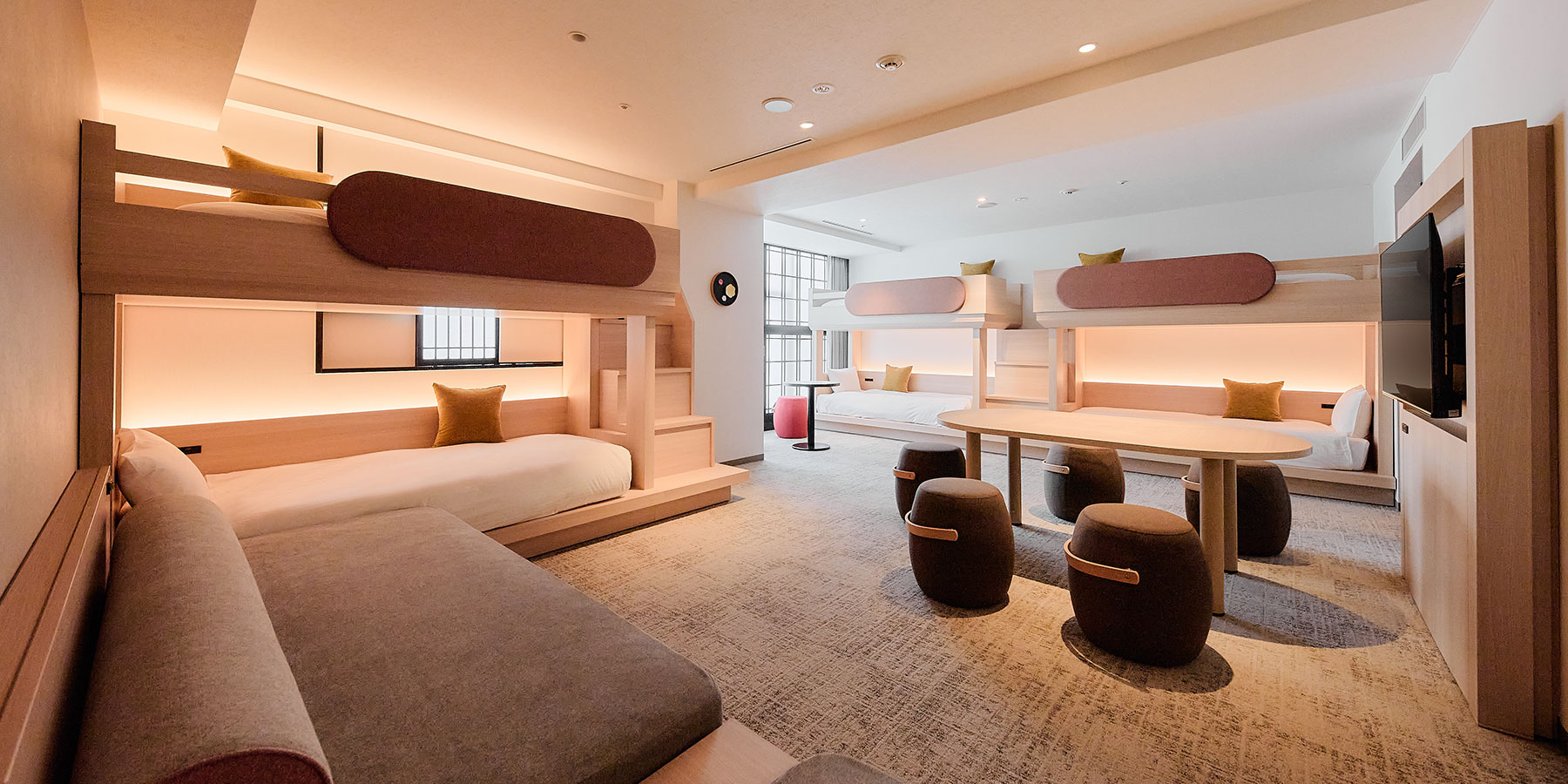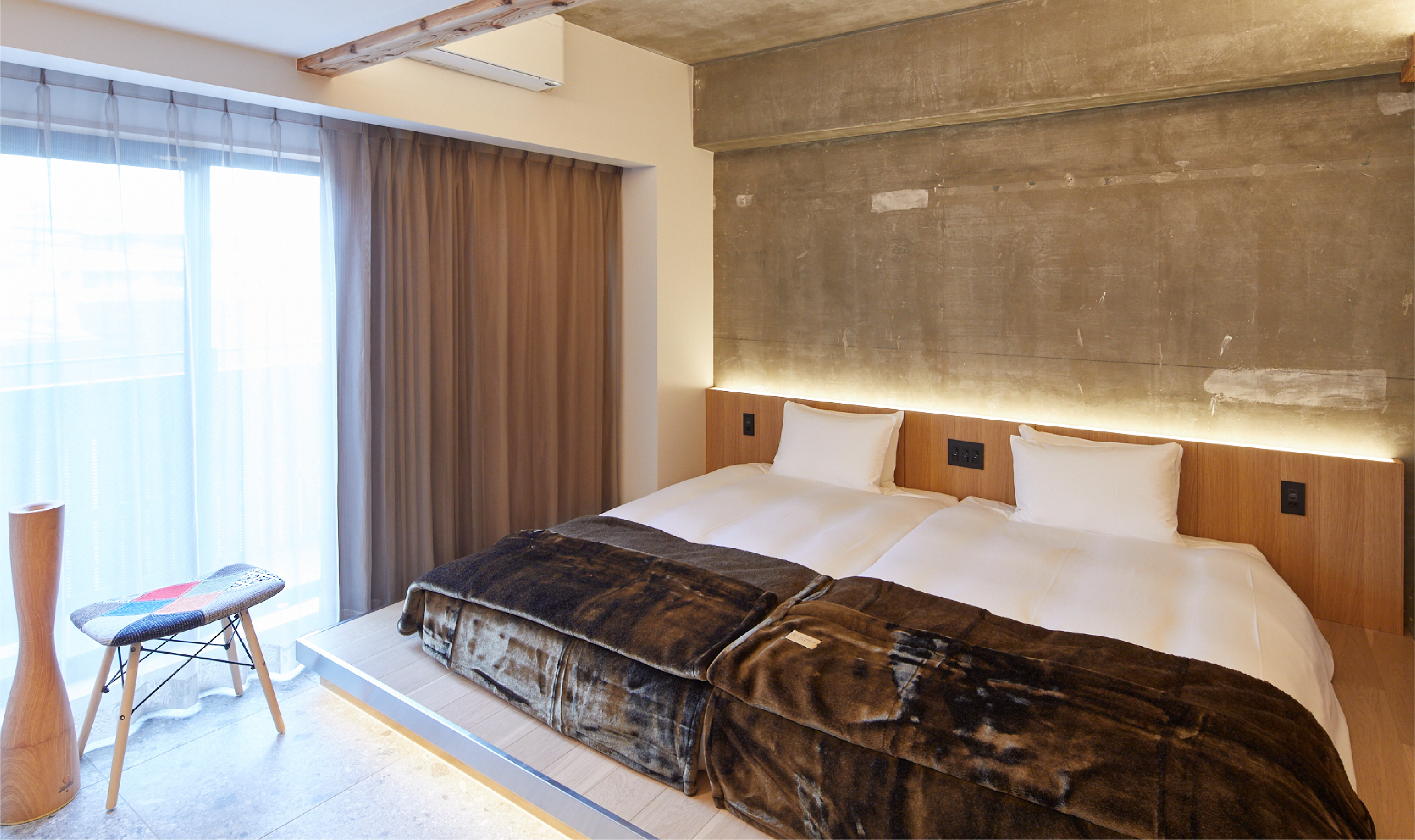 客房呈現滿滿的日本與京都風格,和室設計與柔和的照明,讓人宛如住在傳統京都建築「京町家」中。在飯店內也能體驗京都文化、免費品嚐當地酒屋生產的日本酒,房內提供茶具,讓住客享受京都知名的抹茶文化。