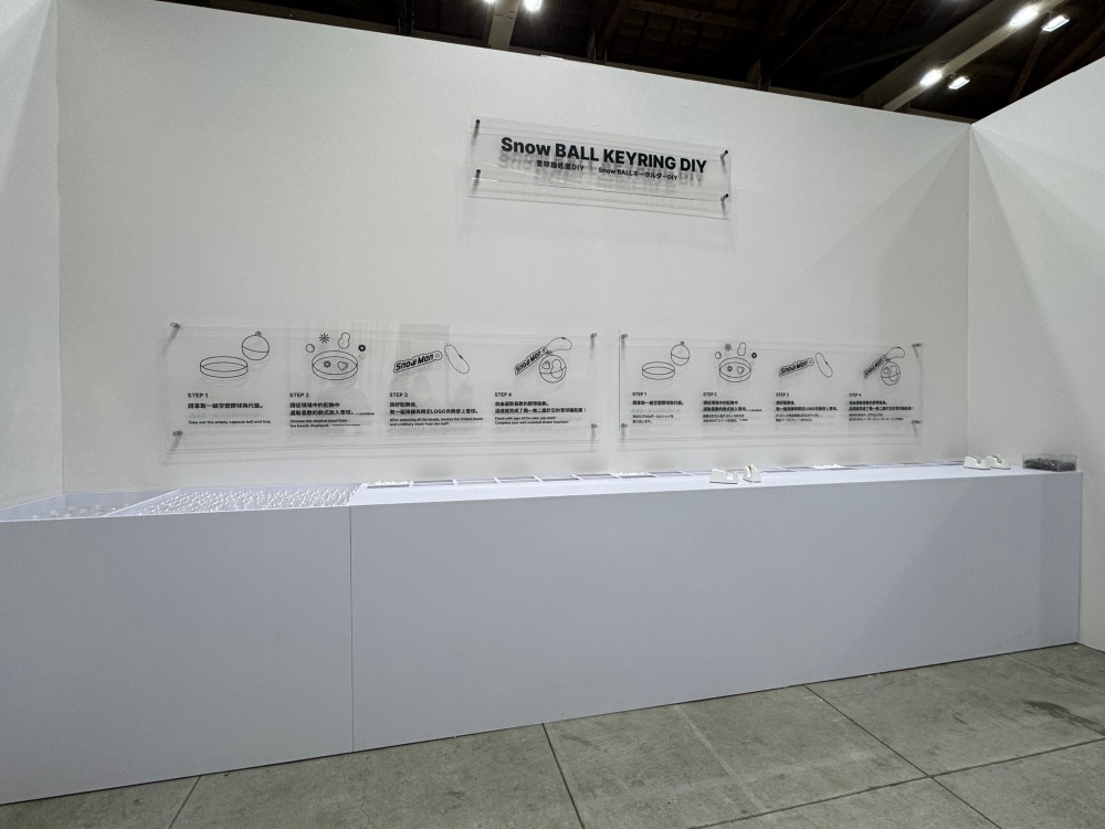 每位參觀者可以在此區域製作一個鑰匙圈,先拿一組透明圓球,再選擇6樣放置在圓球中的裝飾品,加上「Snow Man」名牌跟珠鍊,就是屬於自己獨一無二的雪人鑰匙圈。免費的展覽居然還有可以DIY可做,向井康二興奮的介紹這個區域跟鑰匙圈製作方式,還一直問工作人員:「難道不能選9個裝飾品嗎?」渡邊翔太則依舊沉穩的向大家補充說明:「這個區域是免費的!」兩位也現場示範製作了起來,手做成品也一併展示於會場中,請務必也來親自看看。