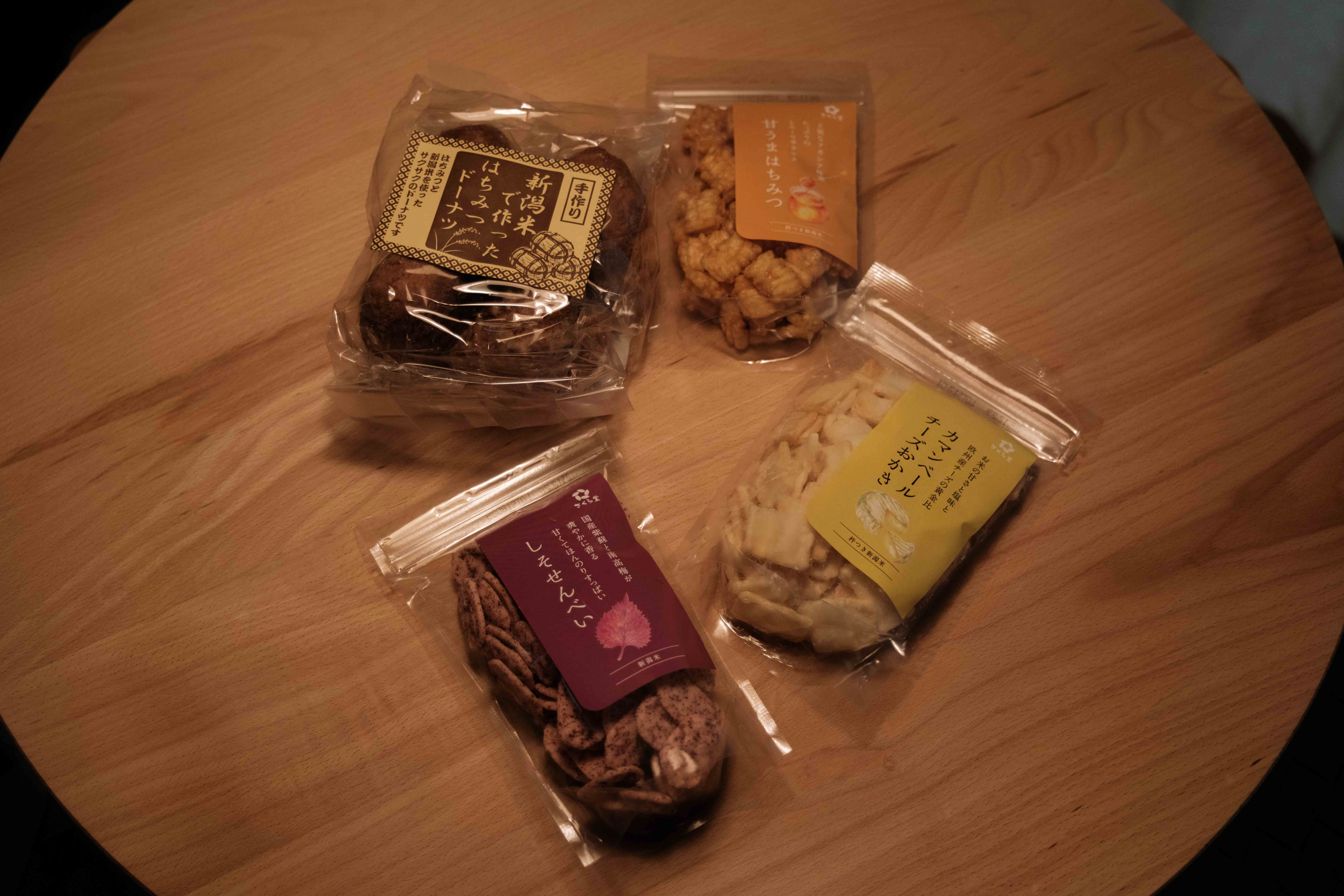 客房內也貼心準備了免費的小點與飲品,適合夜間享用。包含新潟在地的仙貝、果汁、牛奶與日本酒等,展現濃厚的地域風情。館內備品以木質為主,從牙刷到刮鬍刀手柄皆盡量減少塑膠使用。