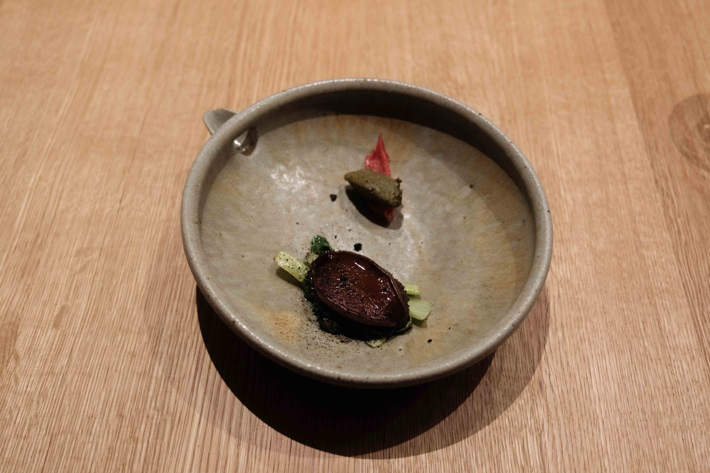 雖然是乾鮑魚,但入口時鮮味極其濃厚,與鮑魚肝的綿密乳化醬結合後,層次更為豐富。這是一道令人驚艷的美味料理。