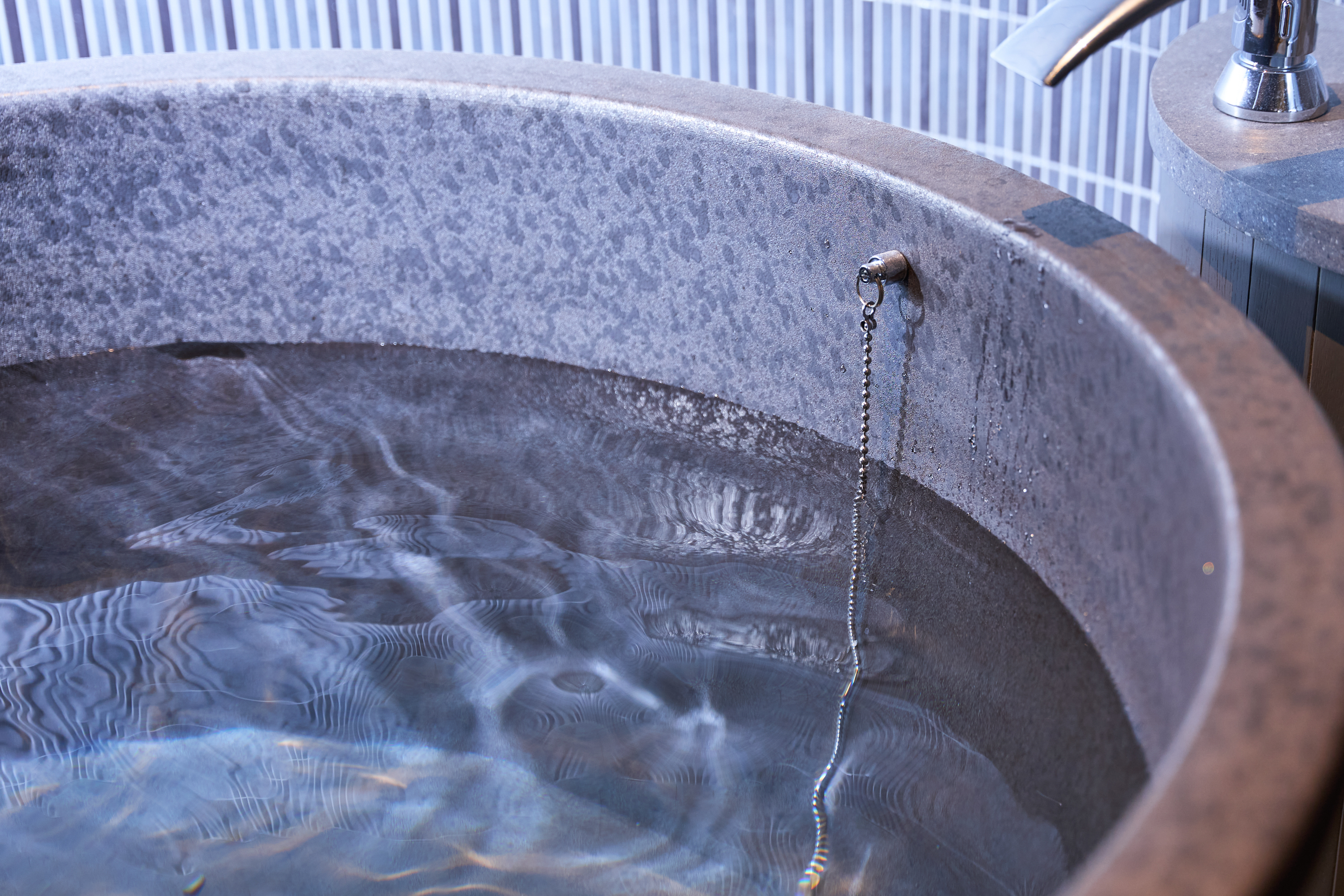 桑拿結束後,可泡入全年維持在約15℃的冷水浴池。這裡的水是當地獨特的地下軟水,硬度僅17,能讓肌膚與髮絲保持柔潤,同時緊緻身體、恢復活力。