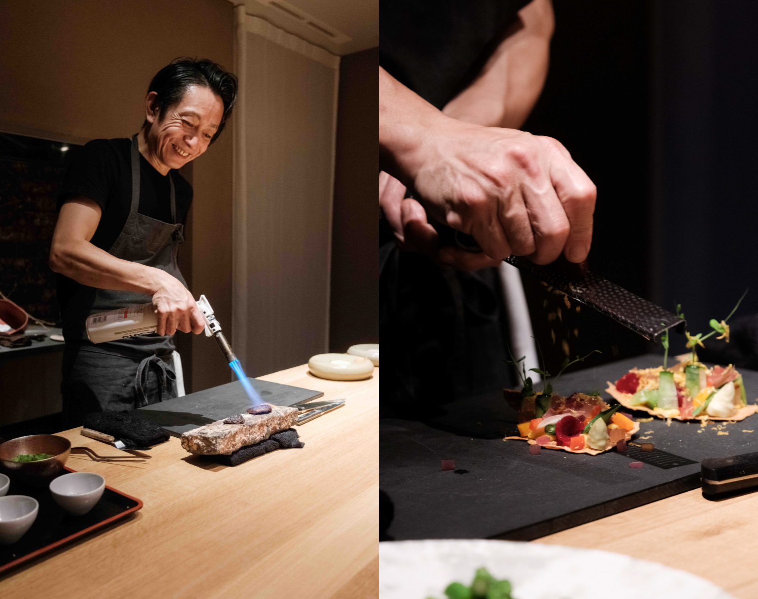 Makoto Fuse主廚對在地食材懷抱尊敬,經過無數次試驗與品味後,細緻地構築菜單。像是將乾燥蔬菜或樹枝研磨成香料、使用發酵蔬菜熬製湯品等,都展現出獨創性。每一道料理都將食材、文化與靈感融合為藝術般的作品,同時搭配當地葡萄酒與日本酒,讓每一道菜都成為舞台的主角。
