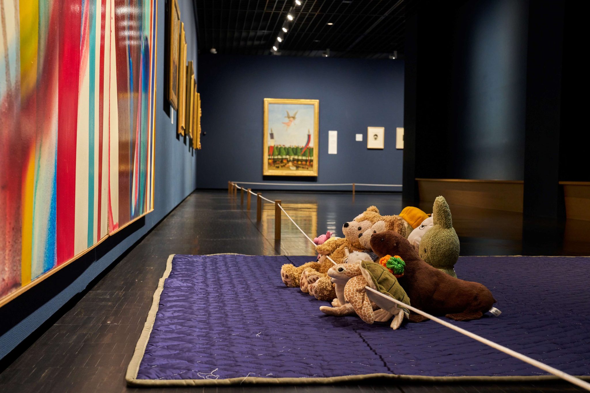 「布偶夜宿會(ぬいぐるみお泊り会)」是東京國立近代美術館為孩子們設計的一項特別活動。讓孩子珍惜的布偶「代替主人」住進美術館,和館內的藝術作品一起度過一晚。希望透過這樣的方式,讓孩子能更自然地親近美術館,也對藝術產生興趣。活動期間,美術館會照顧這些布偶幾天,並在展示室裡替牠們拍下與作品合照的可愛照片。
