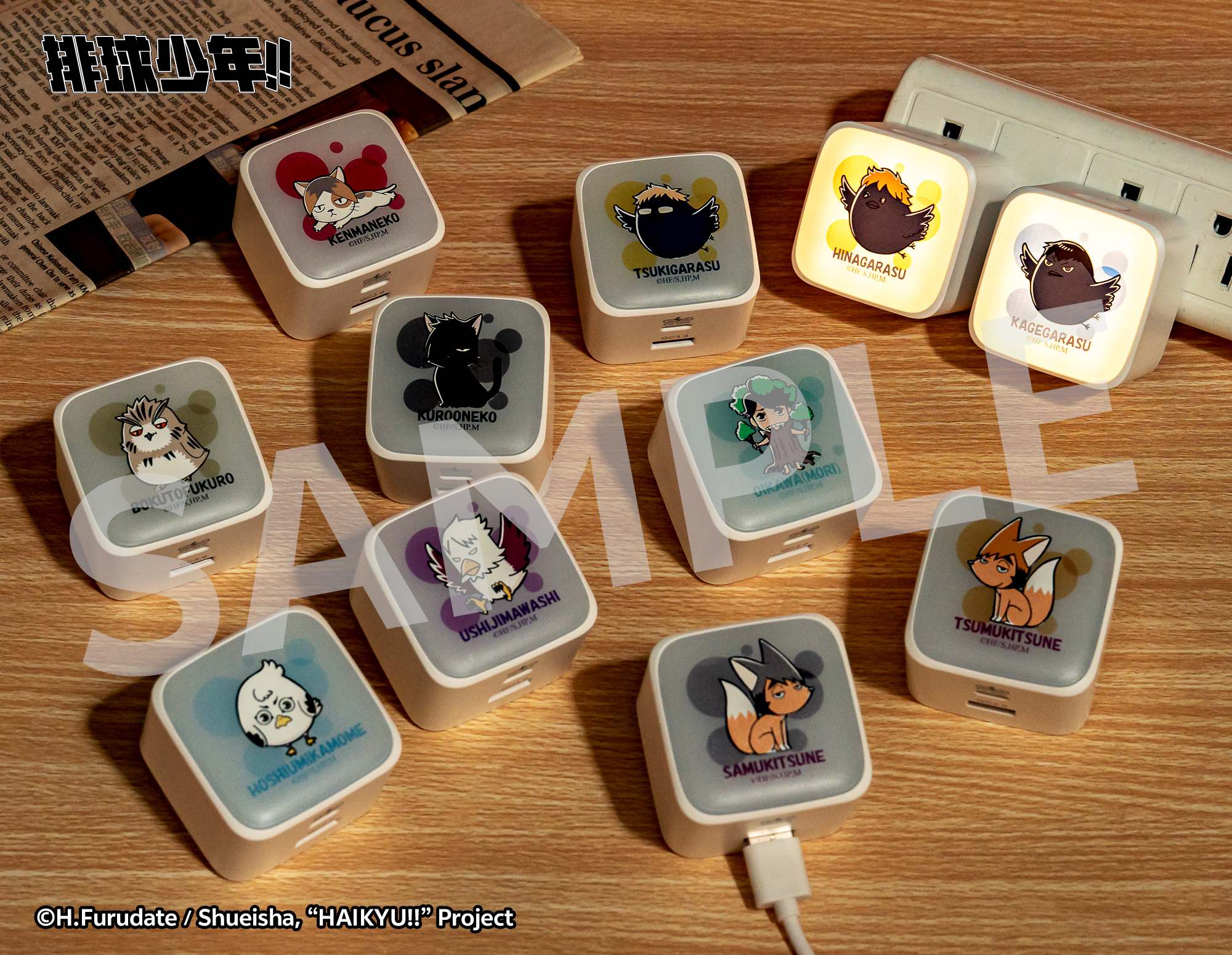 最後登場的是11款「吉祥物發光旅充」,日向烏鴉、影山烏鴉、研磨貓咪等吉祥物的小巧身影下,除了搭載Type-C與USB雙插快充孔,還有三段式亮度設計可以當小夜燈,不論是旅途還是日常,都能讓你充滿能量、元氣滿格!
