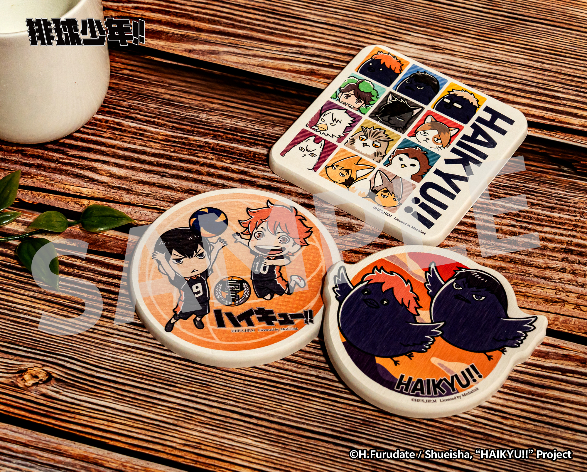 桌面防水必備的「硅藻土杯墊」也同步登場啦!三款設計分別是日向烏鴉與影山烏鴉、躍起擊球的日向與影山及十二隻吉祥物大集合,吸水力滿分,幫你守住每一次飲料突襲!