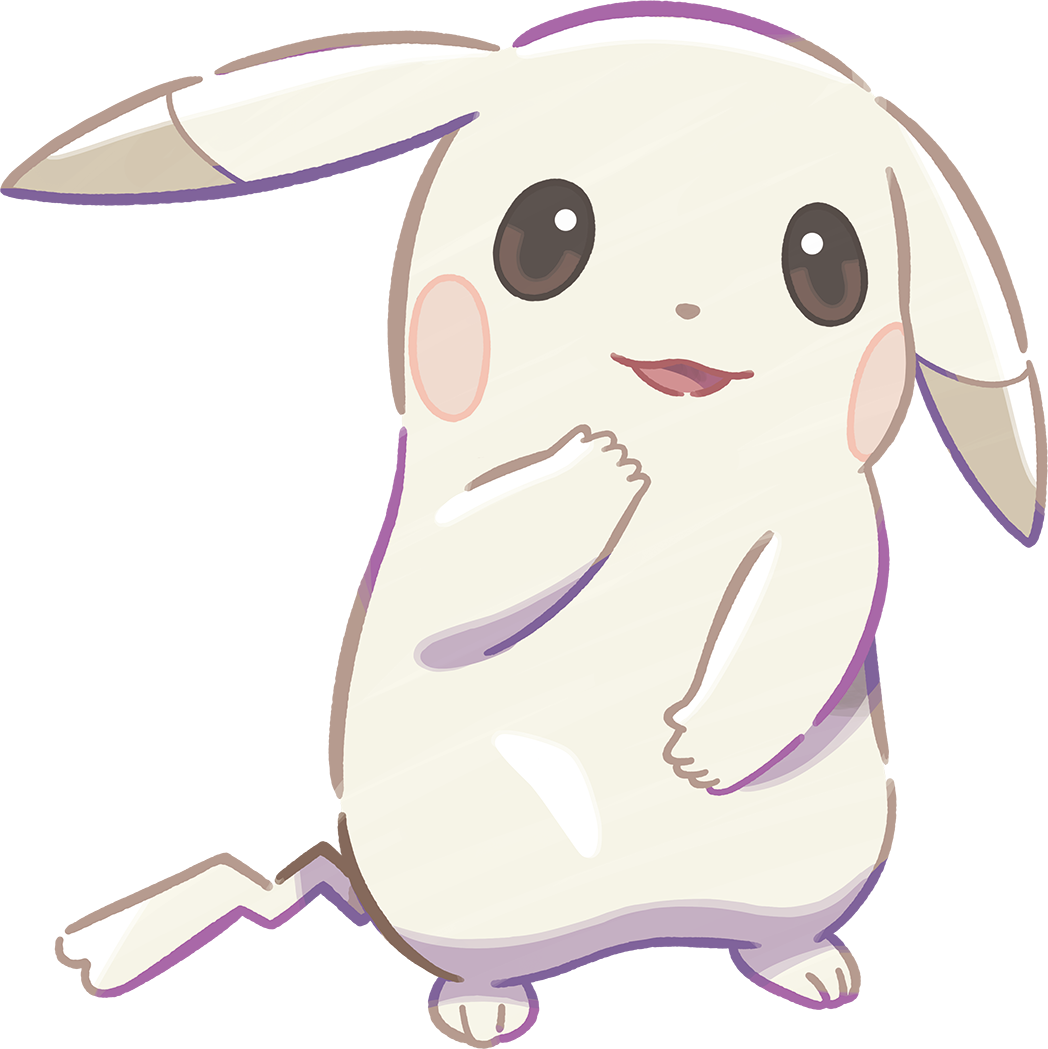 毛色泛白奇特的的皮卡丘。耳朵下垂,看起來有點嬌弱……?