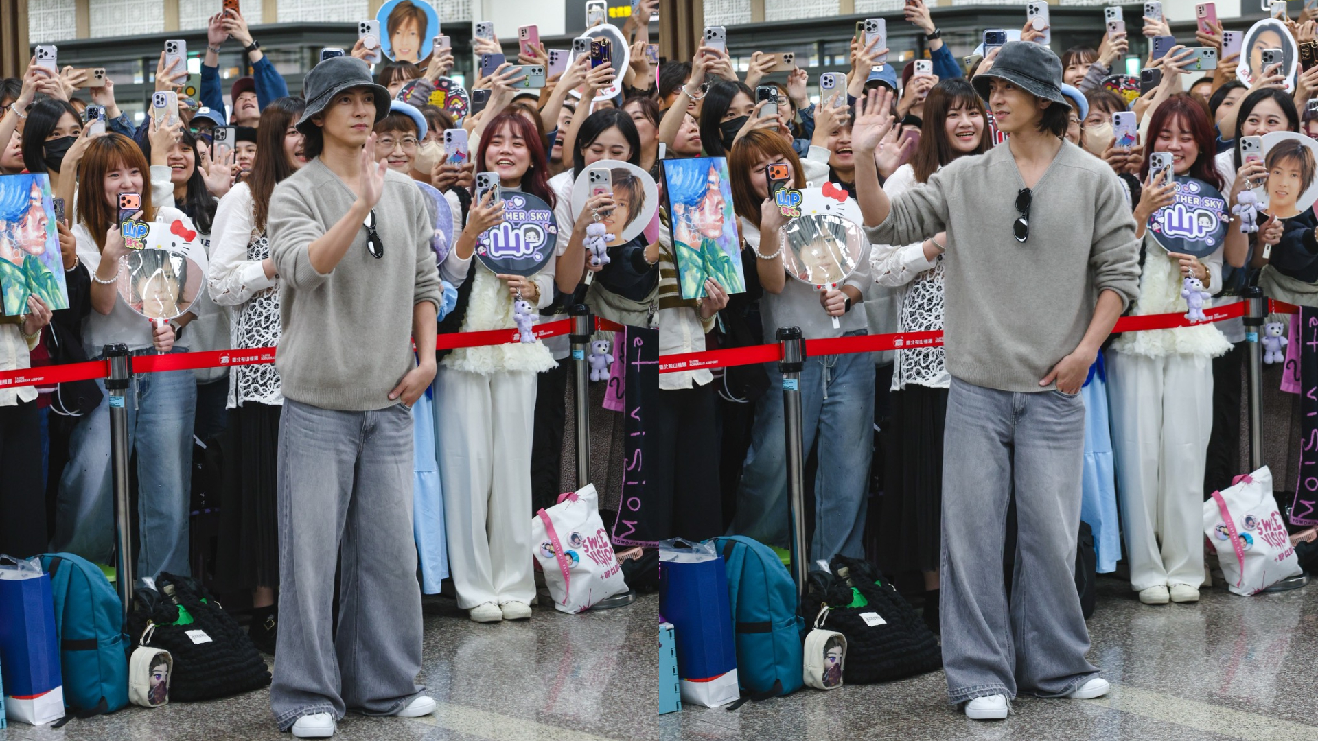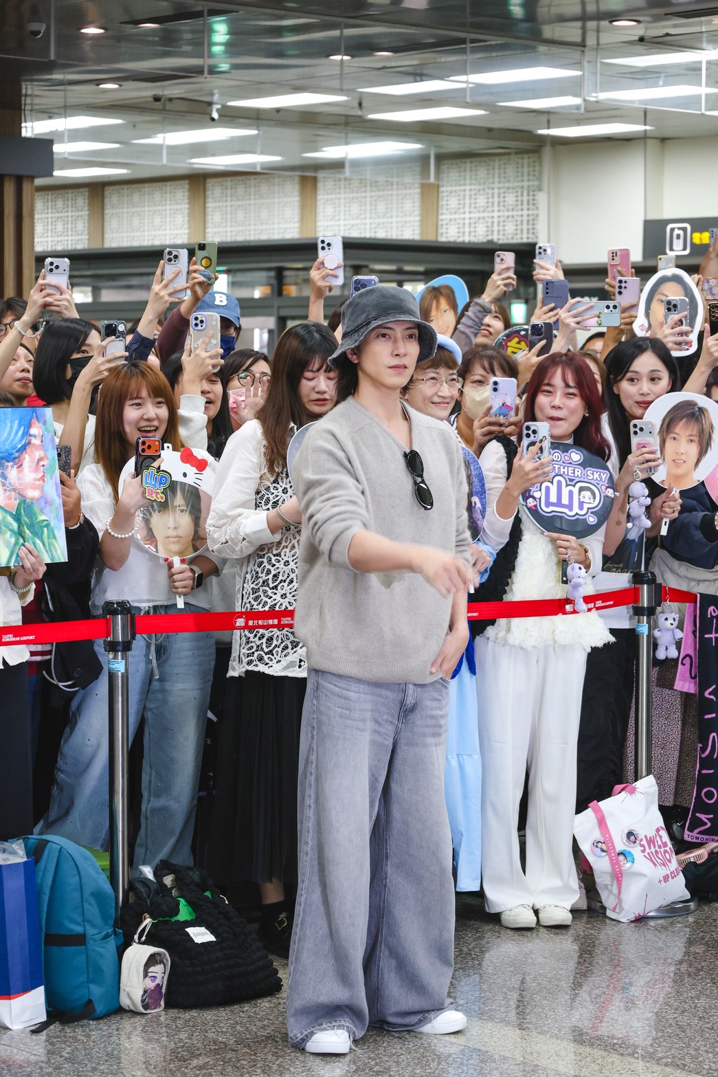 為感謝粉絲們久候迎接,山下智久現場也脫帽致意回應台灣粉絲們的溫暖。