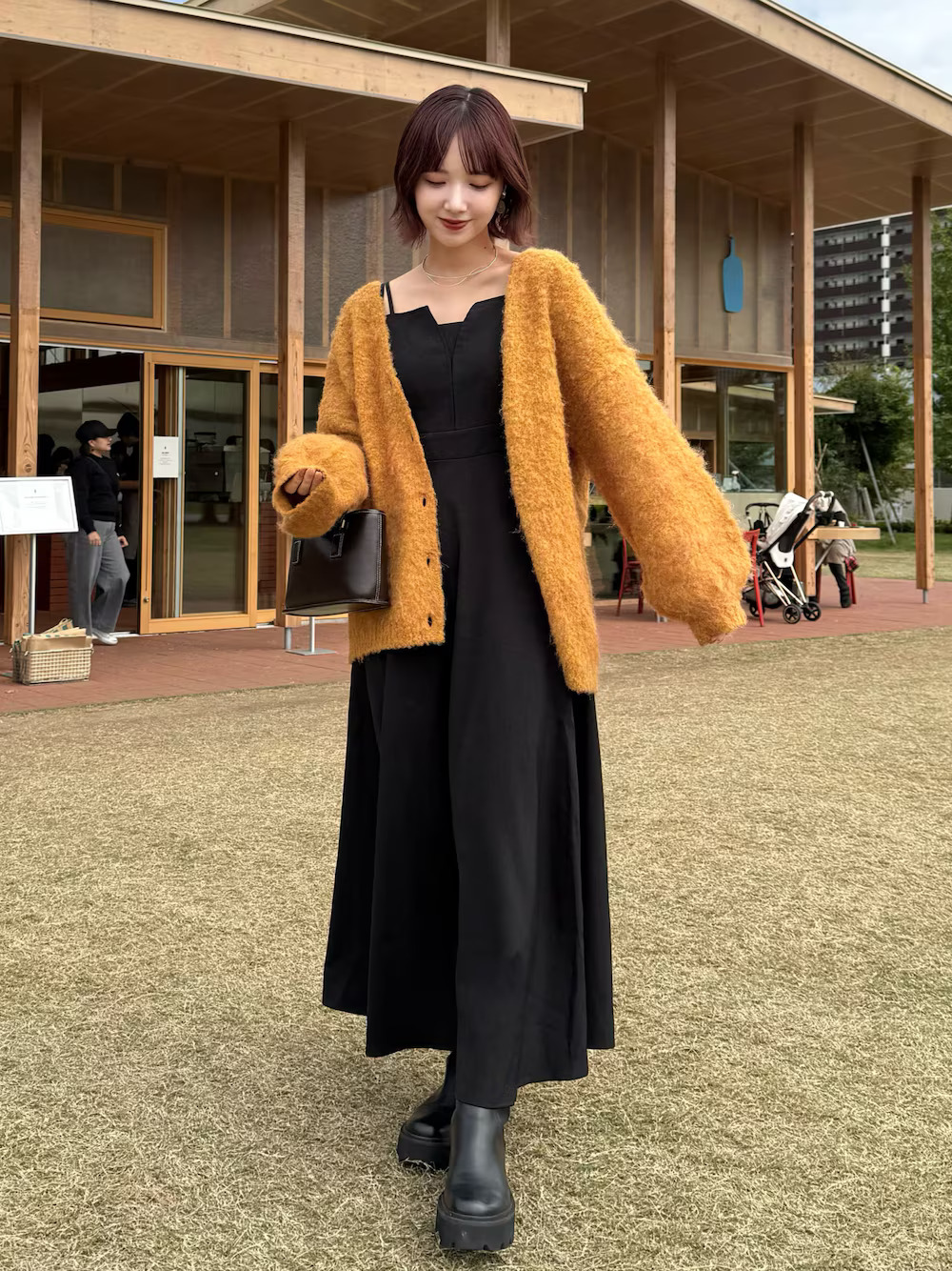 LOOK 03.中長版開襟衫+黑色長裙