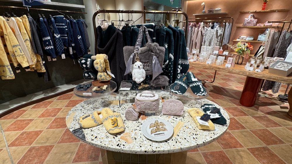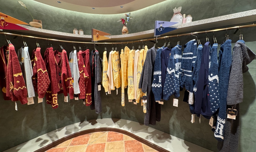 商品種類包含針織外套、毛衣、毛絨褲、室內拖鞋、髮飾、圍巾、襪子等等,每個學院都有相對應的圖案與配色;小物部分還有零錢包,以及超可愛的分類帽、嘿美、多比的吊飾,真的每個都超生火!
