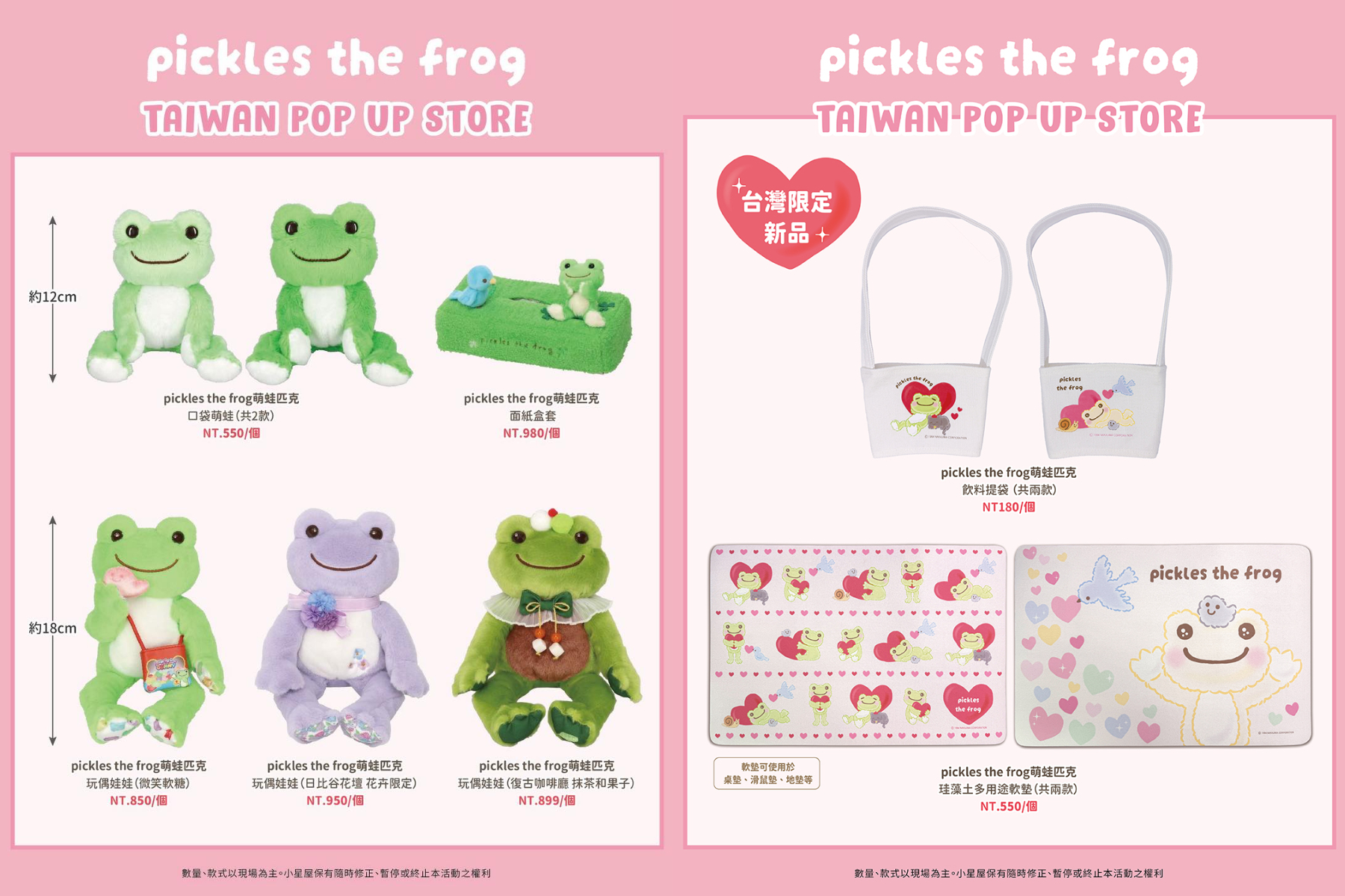 萌蛙匹克(pickles the frog)已在台灣、日本擁有眾多粉絲,周邊以柔和自然的色調、蠟筆塗鴉風格,展現俏皮可愛的獨特魅力,青蛙的日語發音「KAERU」和「回家」的日語發音相同,可愛的發音也讓粉絲著迷。