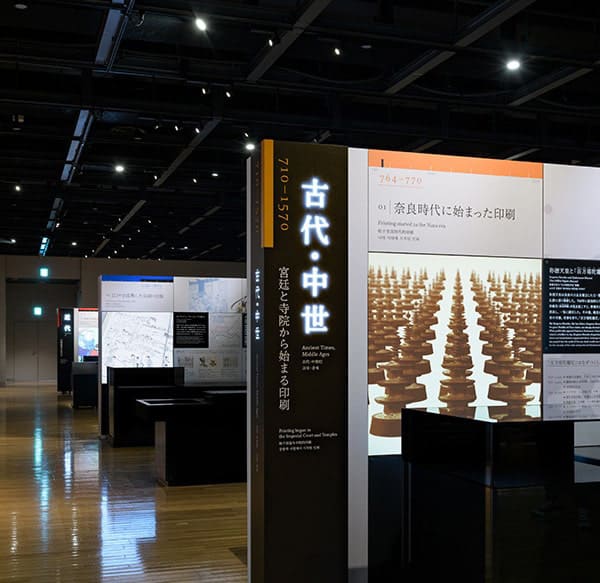 印刷自古以來深刻影響日本社會與文化,其力量遍及政治、宗教、教育、娛樂與新聞報導等各個層面。透過回顧日本歷史中的重要事件,此展區以博物館館藏資料為基礎,解析印刷在日本的形成過程與發展軌跡,呈現印刷如何成為推動社會變遷的重要力量。