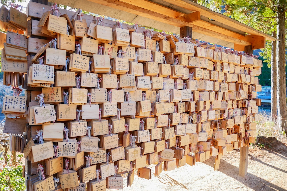 境內的繪馬架上掛滿祈求事業有成、飛黃騰達等各種願望的繪馬。(圖文提供:HIT廣島縣觀光聯盟)