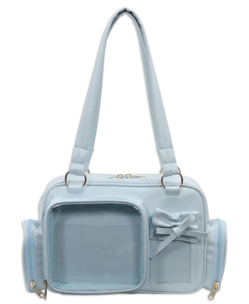 最後則是波士頓包,正面與側邊都有做透明的開窗收納設計,甚至還有做透明卡片夾層,讓你從娃娃、小卡、別針、立牌等周邊都能裝好裝滿,包身周圍全都「痛好痛滿」,無疑是熱衷於推活粉絲必備的包款呢!