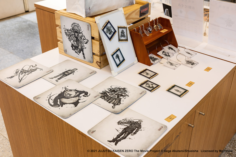 展覽限定周邊商品一直都是粉絲搶購焦點,本次特別推出多款精美吊飾、畫框磁鐵等台北站限定商品,而最大亮點莫過於知名武人畫家こうじょう雅之(Kojo Masayuki)為展覽全新創作的武人畫作品,以「武人」精神,重新詮釋《劇場版 咒術迴戰 0》篇的主角群,官方也將推出多款武人畫限定週邊,包括武人畫帆布袋、滑鼠墊、壓克力牌……滿足粉絲一次收藏展場限定、台北限定、武人畫限定的三重願望。