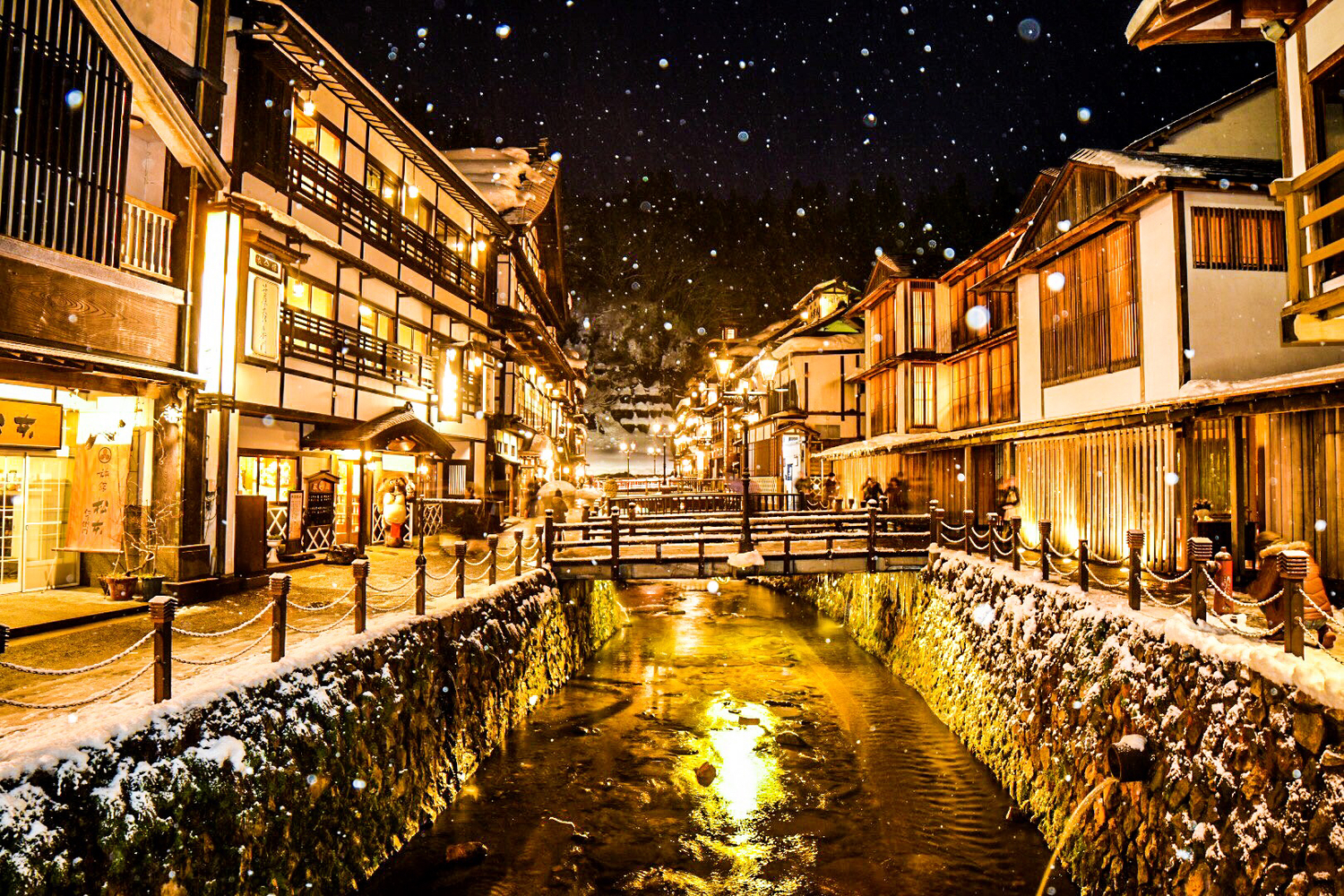 說到銀山溫泉的看點,除了懷舊風情外,美麗的雪景也是你不可以錯過的部分。在寒冷的冬夜中,附上靄靄白雪的溫泉街搭配著柔和的瓦斯燈光,宛如時光倒流的特別景色,讓人不禁被引領進了一個遠離日常的夢幻世界。