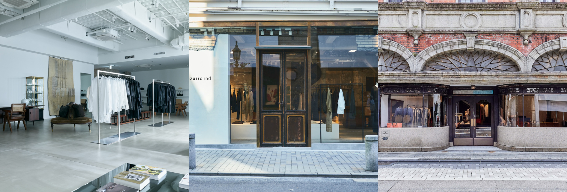 2025年6月新開幕的青山旗艦店,除了有mizuiro ind 的女裝以外,也有販售品牌2025年的全新中性(Unisex)支線 「Free People」。店鋪空間宛如藝廊,透過留白、光線與動線設計,重新定義服裝與空間之間的關係。 位於京都的概念店 MARcourt 京都三条店,設址於 1890 年建造、並登記為有形文化資產的歷史建築之中,在服裝與空間的對話中,展現品牌獨有的歷史層次與靜謐氣質。 而神戶直營店則由品牌設計師歷時一年親自規劃,在保留歷史建築原有復古風貌的同時,巧妙融入現代語彙,體現 mizuiro ind 對於「過去與當代並存」的空間哲學。三家直營店完整呈現品牌理念,是品牌邁向海外、歐美市場的國際門戶。