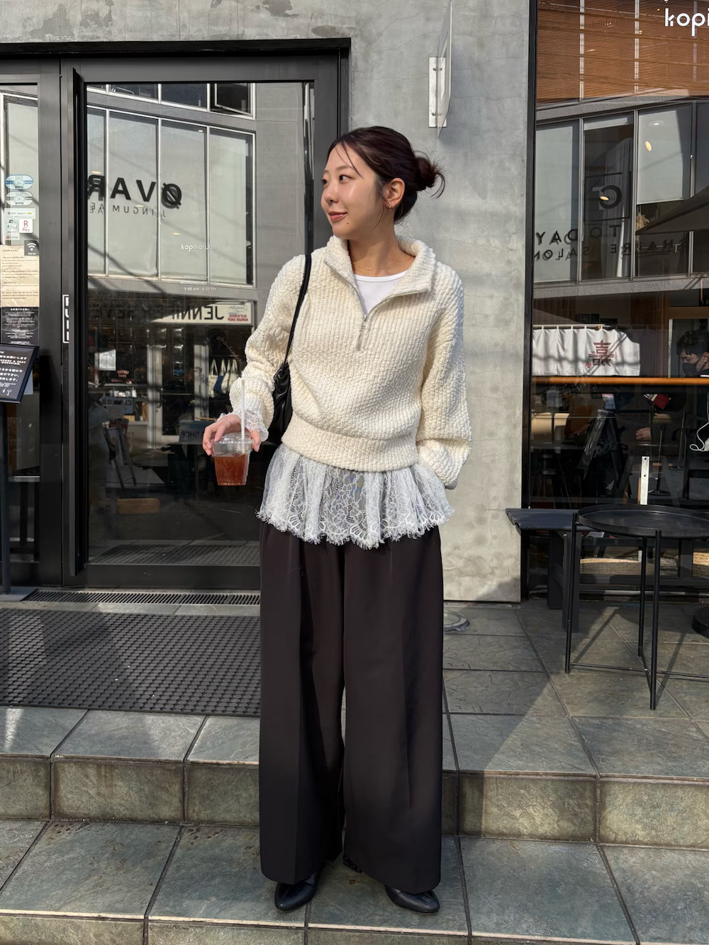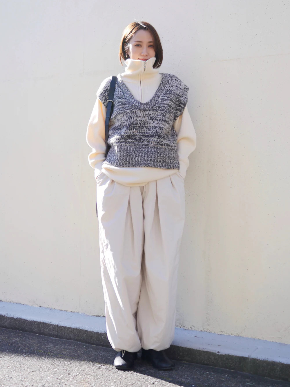 許多人衣櫃裡一定都有的打褶休閒長褲,一直以來深受日本女生喜愛,百搭好駕馭的款式,能與任何單品混搭,選擇半拉鏈上衣 + 休閒長褲,展現迷人的知性氣息,想點亮層次的話,外搭背心或內搭蕾絲上衣,使細節快速擁有搶眼聚焦度。